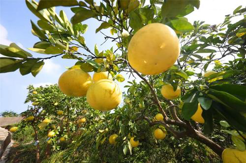 梁平虎城尖柚属于沙田柚品种系列,已有上百年的栽培历史,果汁多,果肉酸甜可口。单果重800—1500克,果实高肩平顶,形状美观。色泽橙黄,皮溥芳香,是全国柚果外香型最香的柚类品种。果肉纯甜、细嫩化渣。果皮富含香精油、果胶等物质。具有止咳、化痰、治疗便秘等多种保健功能,素有天然“罐头”之美称。