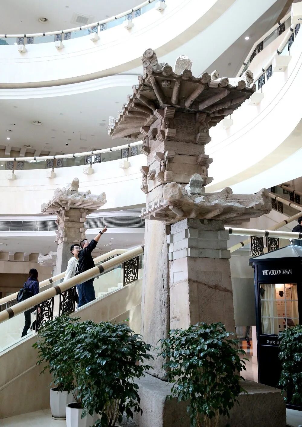 ▲在重庆中国三峡博物馆,矗立于大厅的乌杨阙被人们称为镇馆之宝,具有很高的研究价值,其精美图案令参观者惊叹。特约摄影 钟志兵