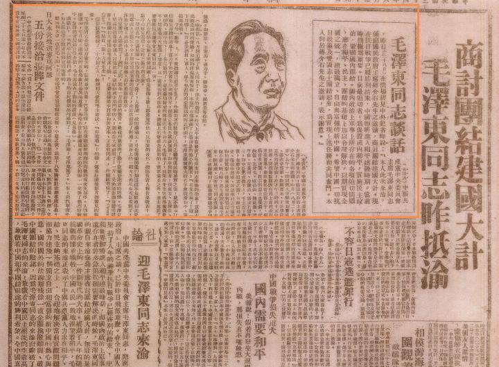 ▲1945年8月29日《新华日报》报道毛泽东来渝参加重庆谈判