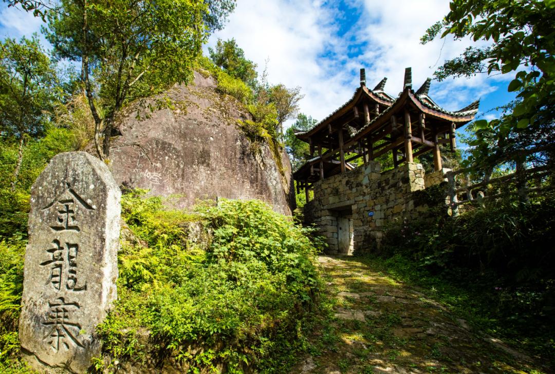 金龙寨何以得名?相传此寨于1863年由保长焦国柱监工修建,因寨门紧临的一座巨石,酷似一条升天金龙盘旋山顶,时时刻刻护佑着栗子这一方水土,所以当地人都称为金龙寨。