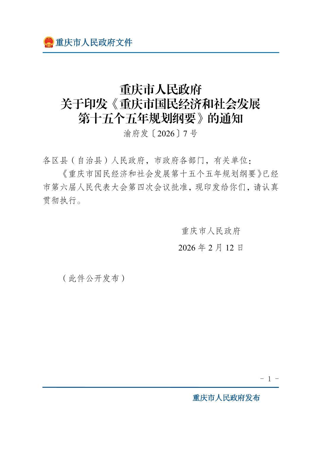 | [ 发文字号 ] | 渝府发〔2026〕7号 |