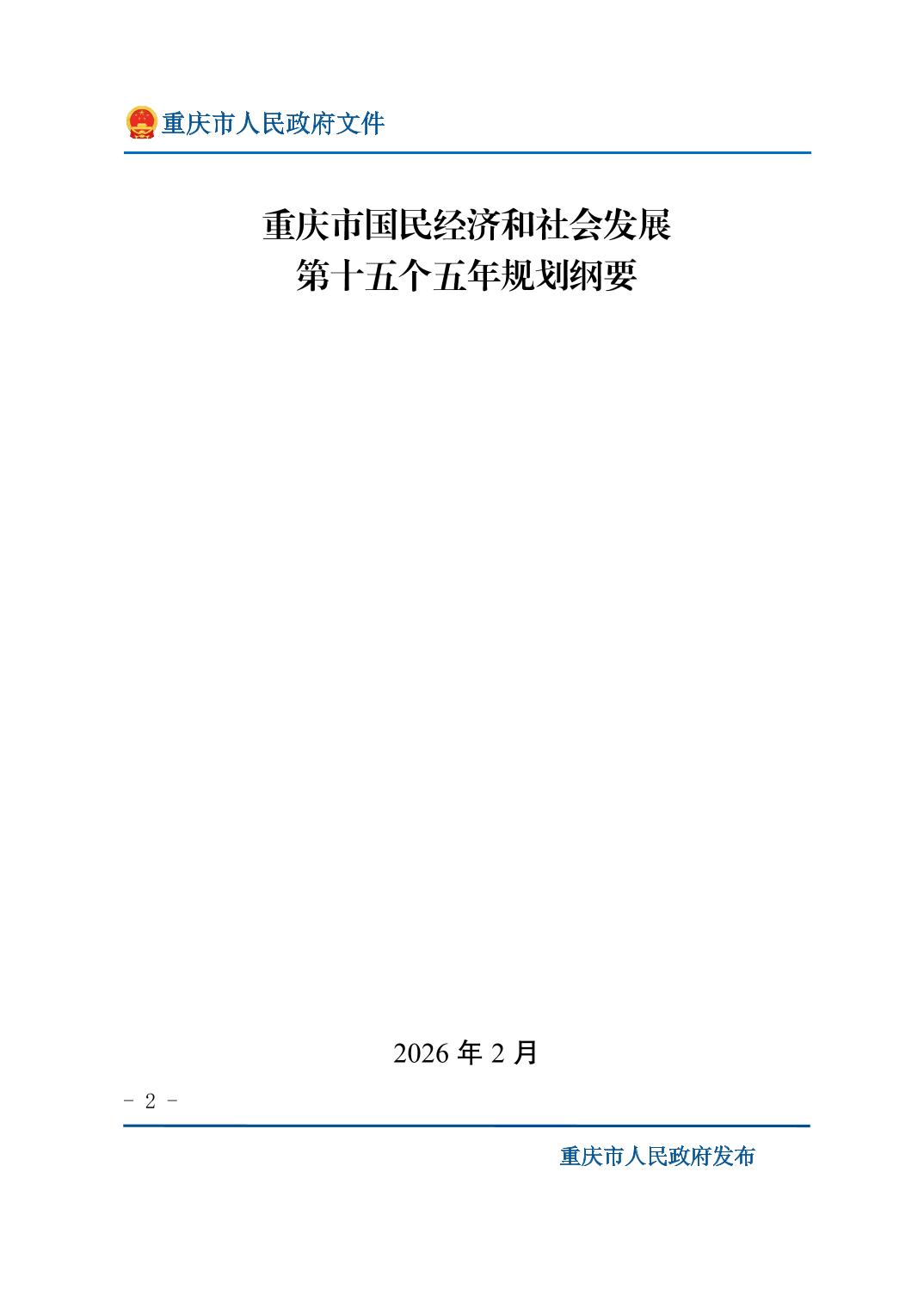 | [ 索引号 ] | 11500000009275780L/2026-00001 | [ 发文字号 ] | 渝府发〔2026〕7号 |