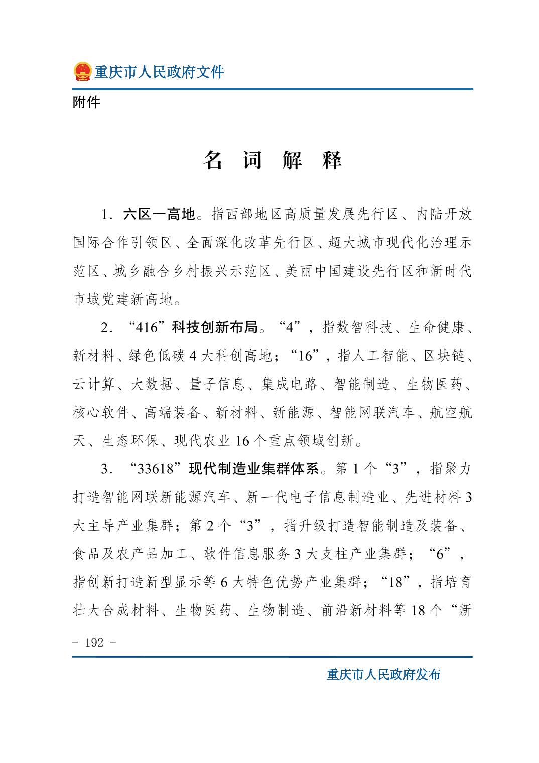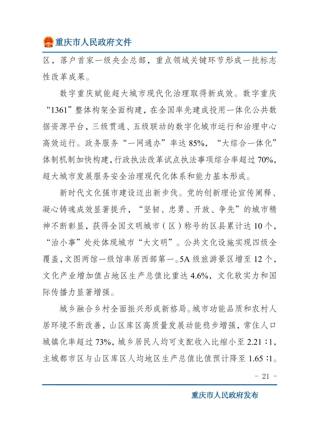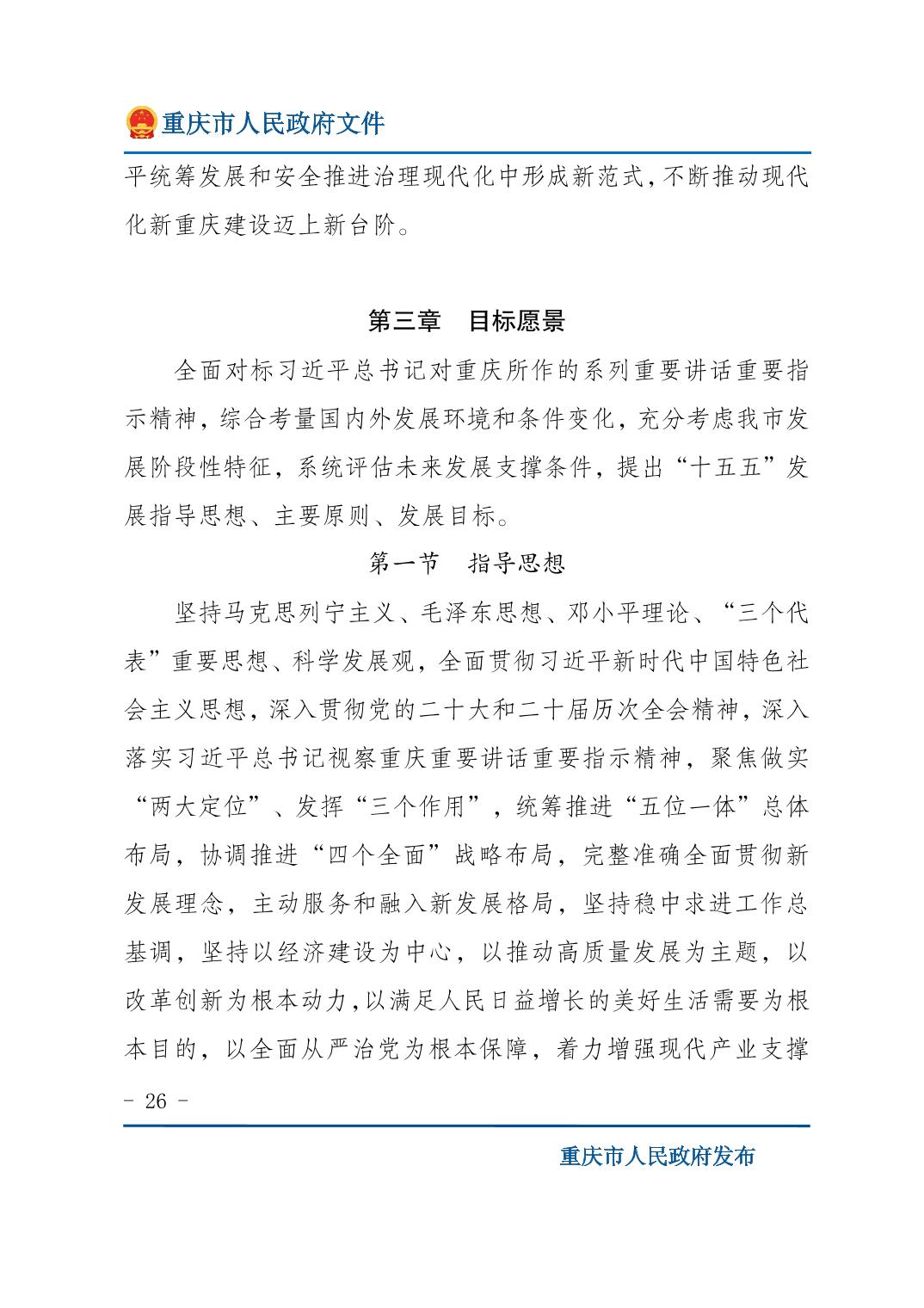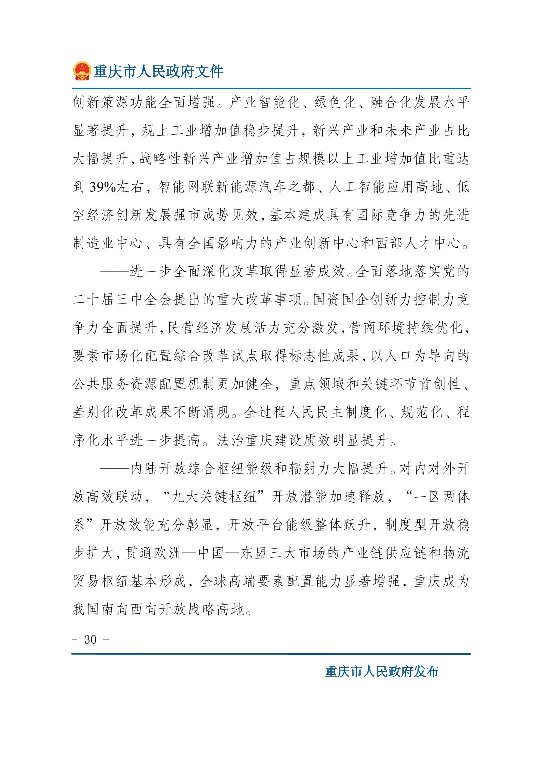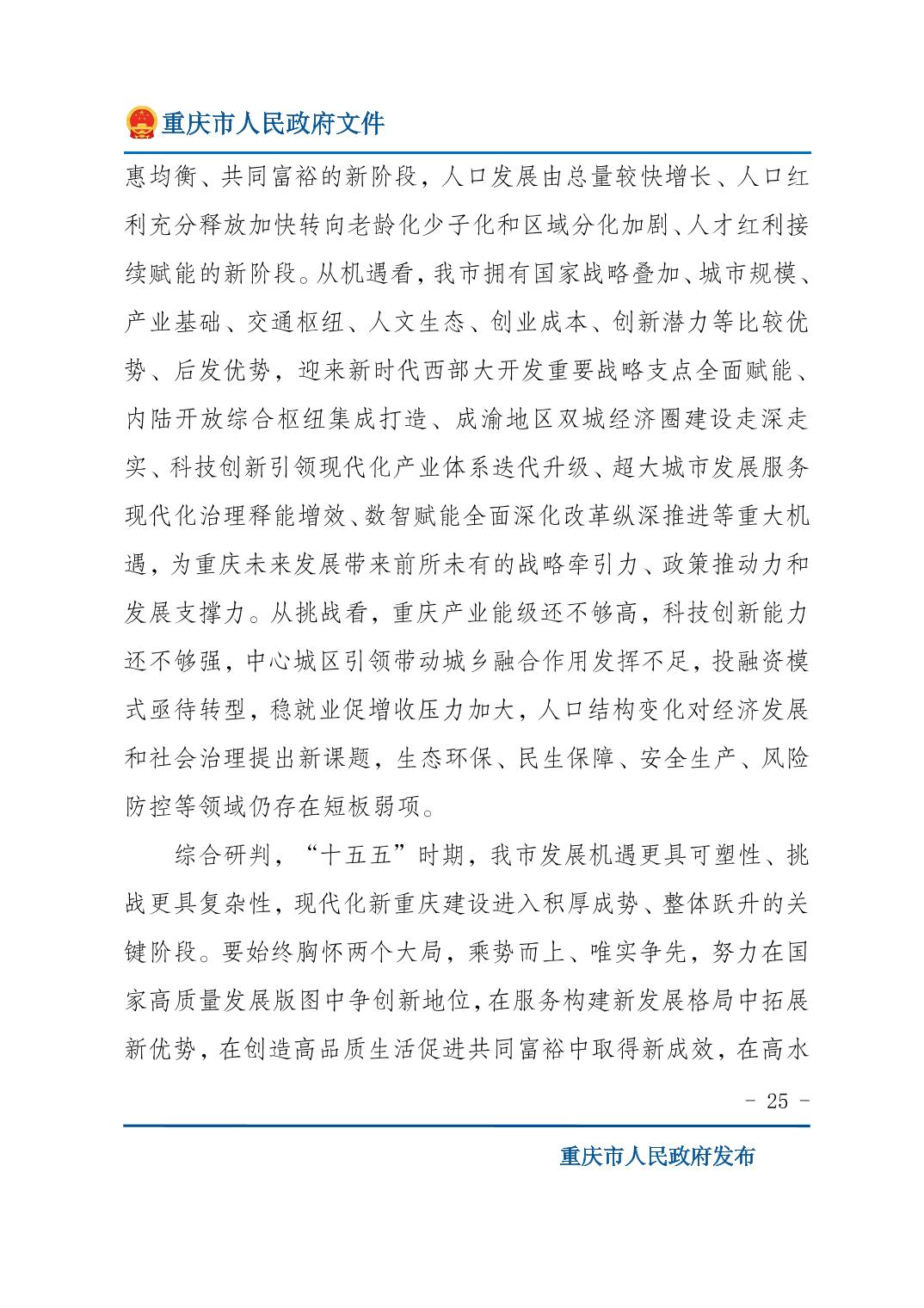 重庆市人民政府关于印发《重庆市国民经济和社会发展第十五个五年规划纲要》的通知