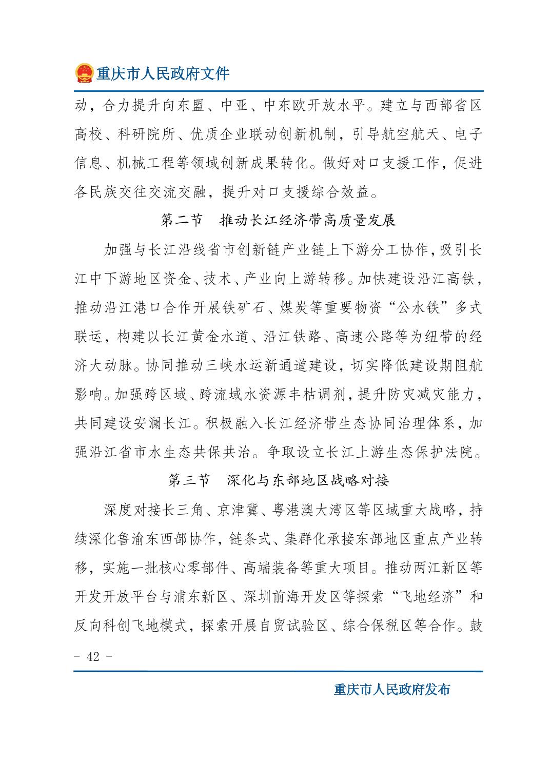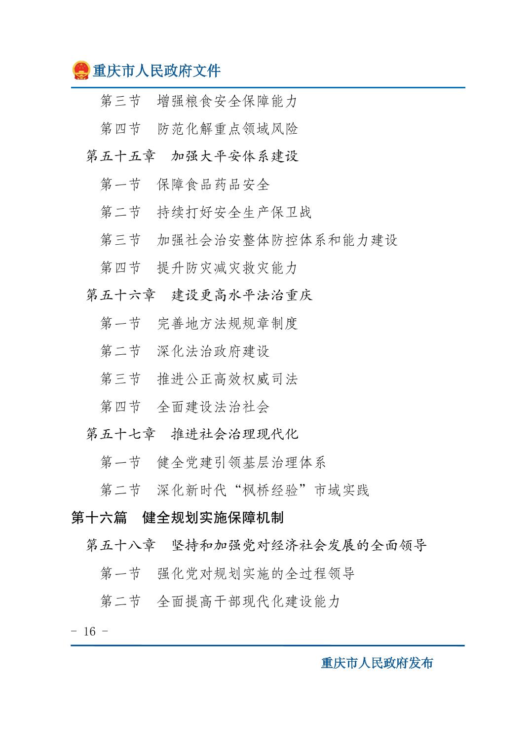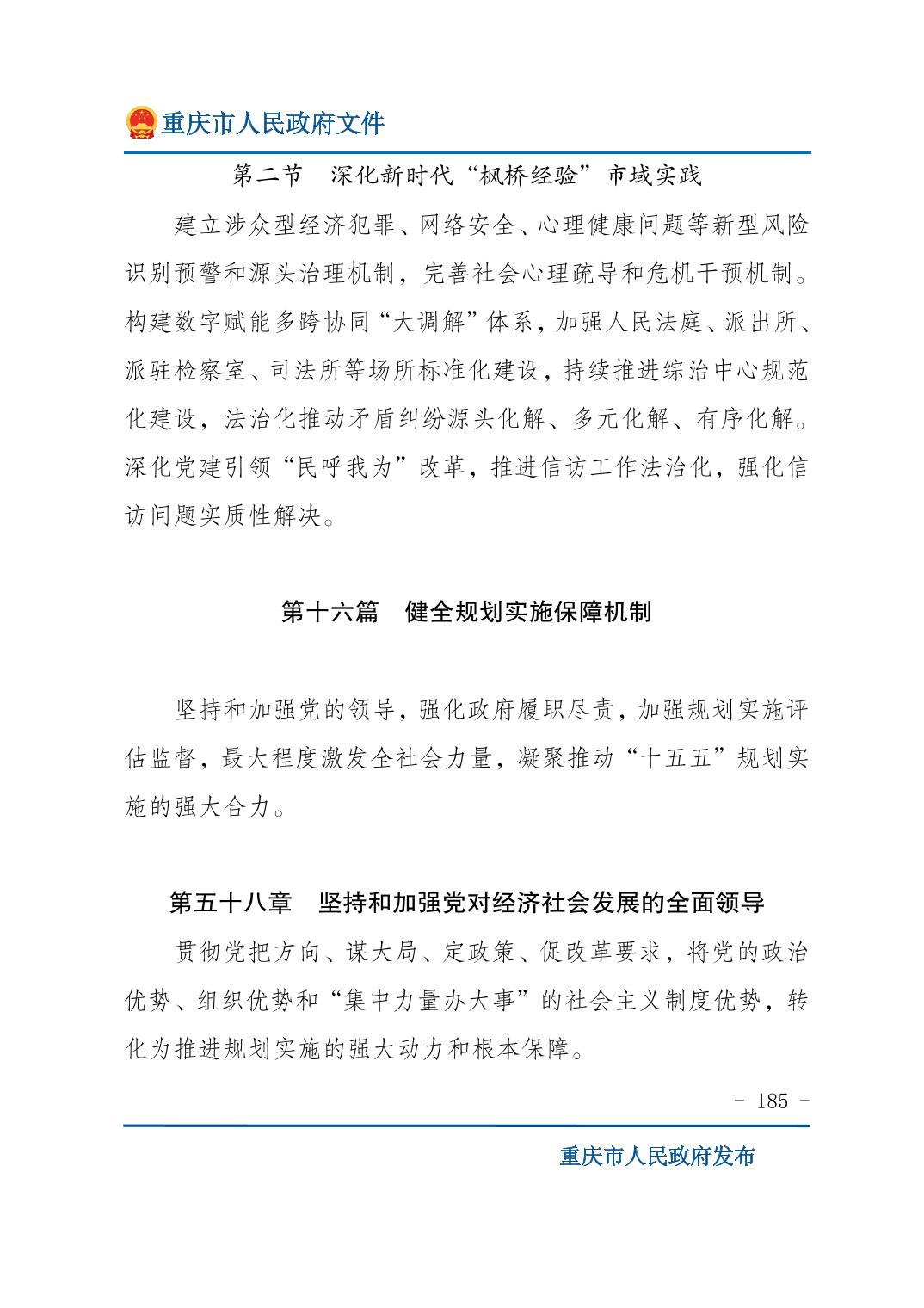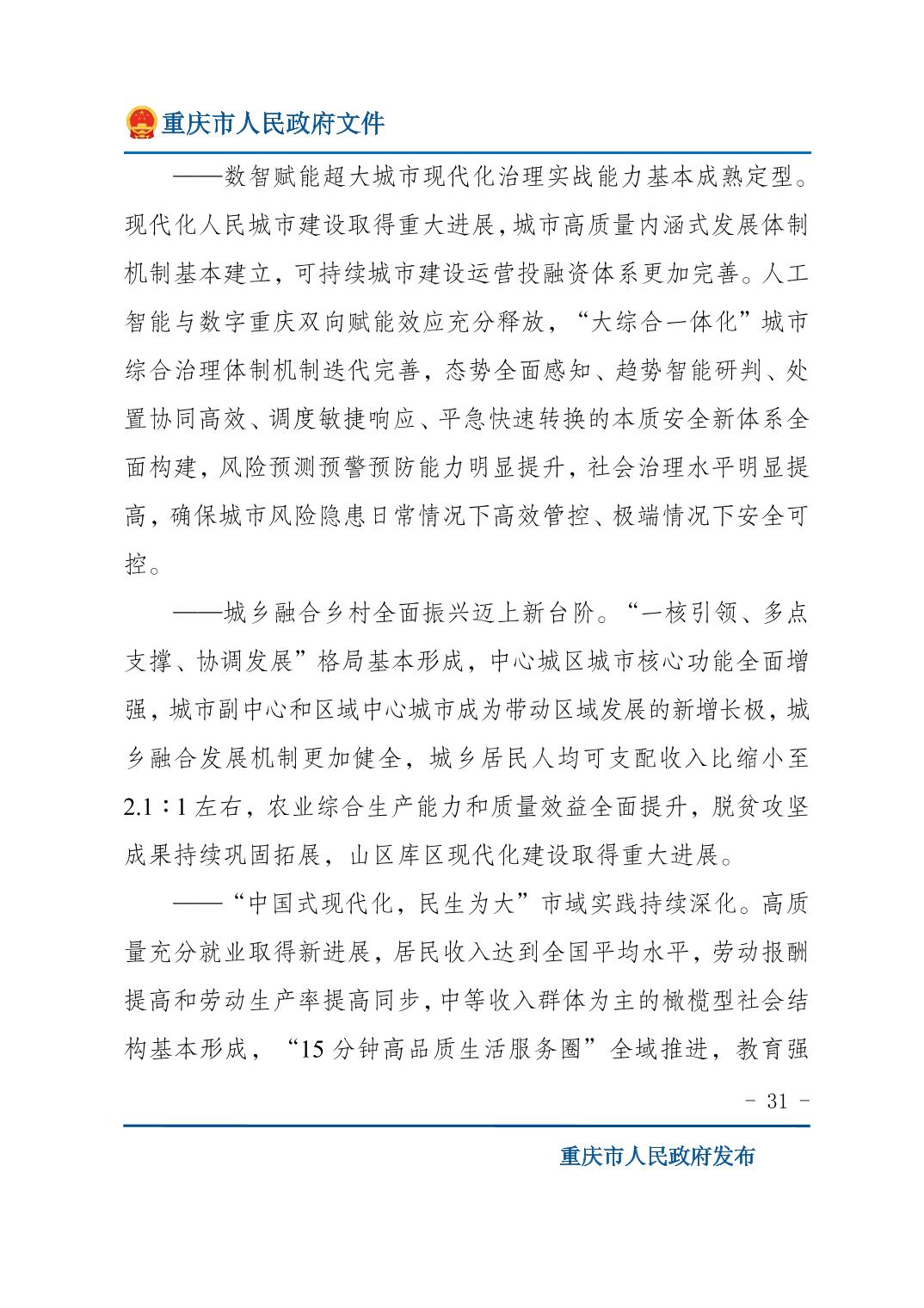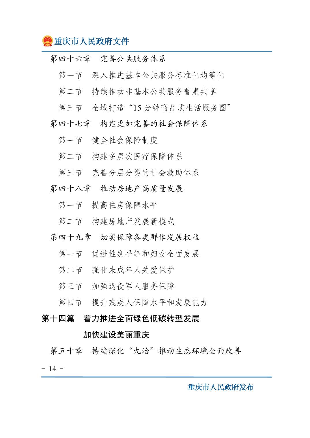 重庆市人民政府关于印发《重庆市国民经济和社会发展第十五个五年规划纲要》的通知
