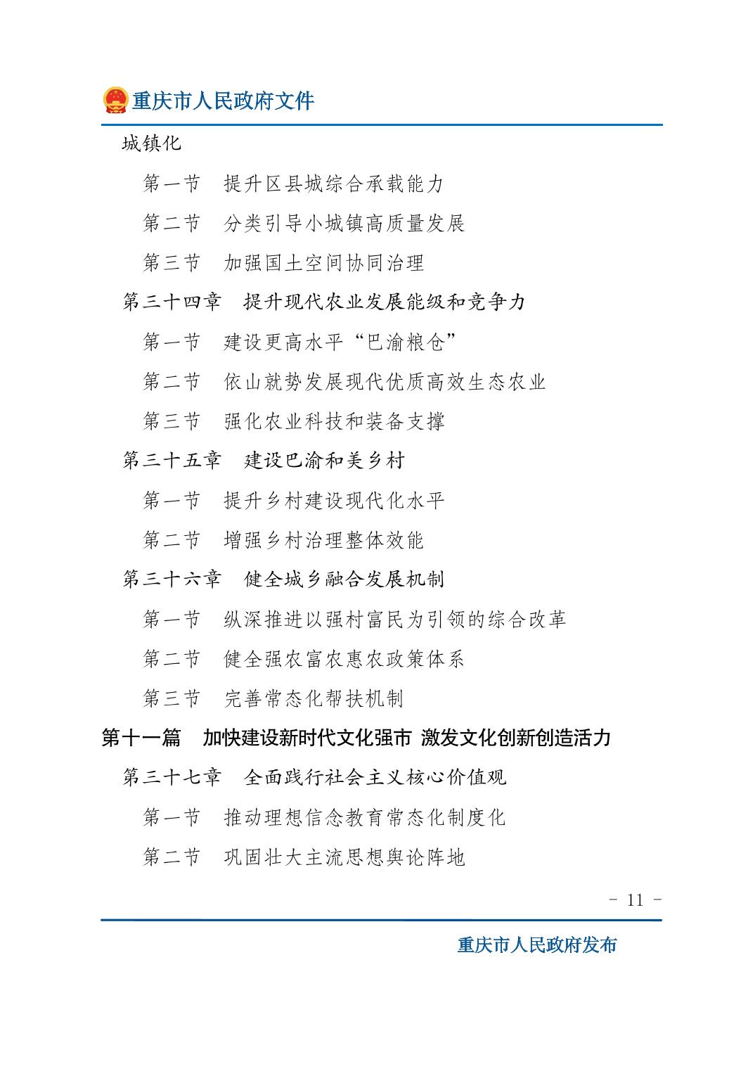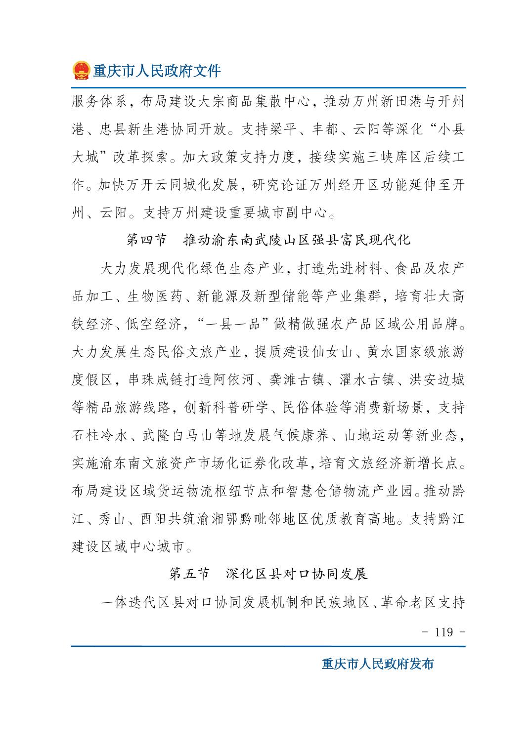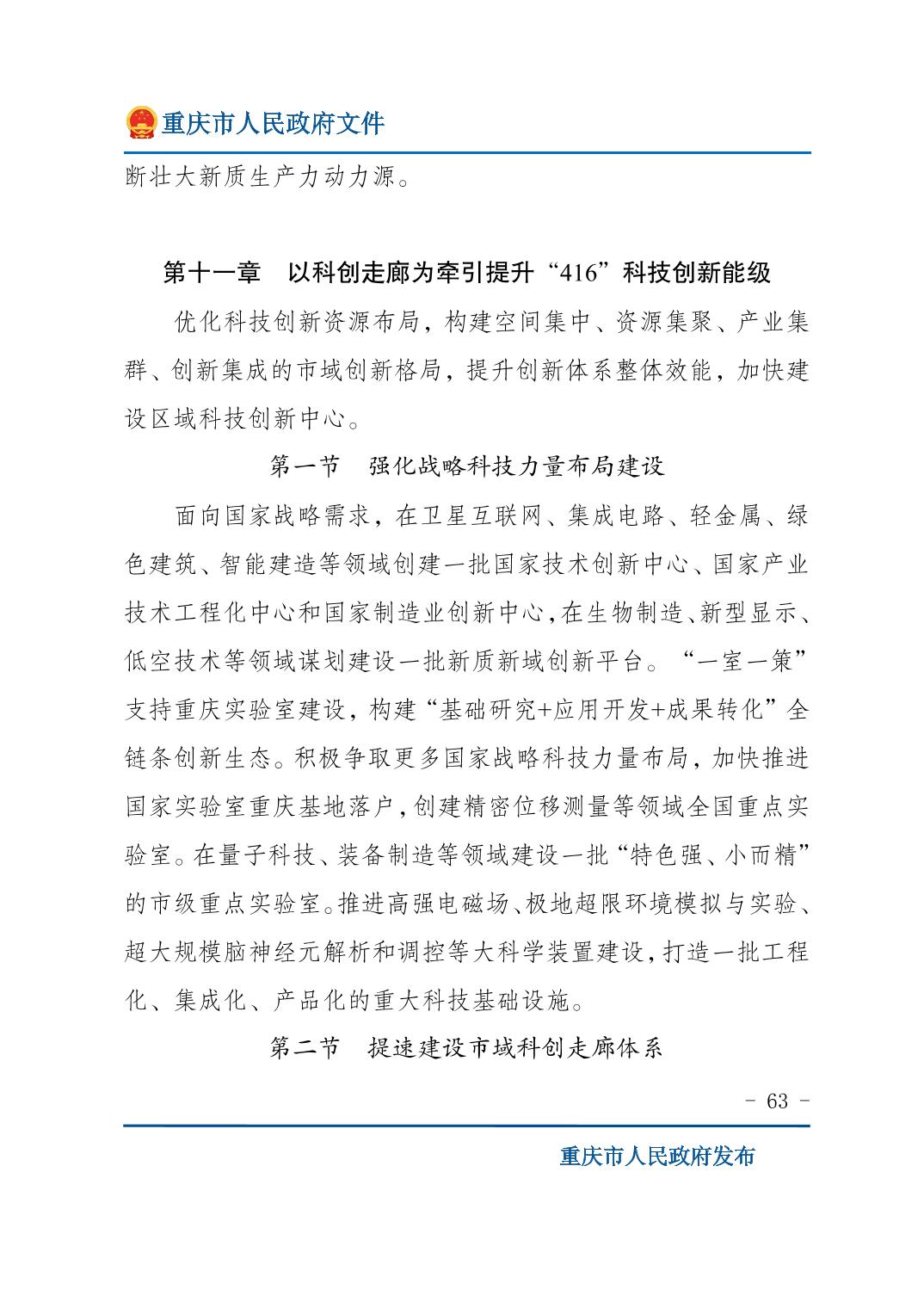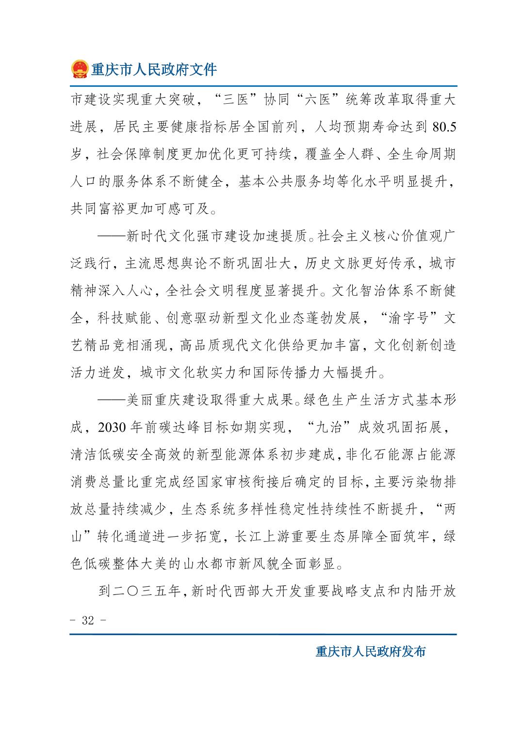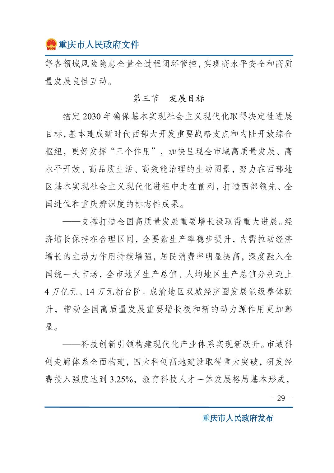 重庆市人民政府关于印发《重庆市国民经济和社会发展第十五个五年规划纲要》的通知