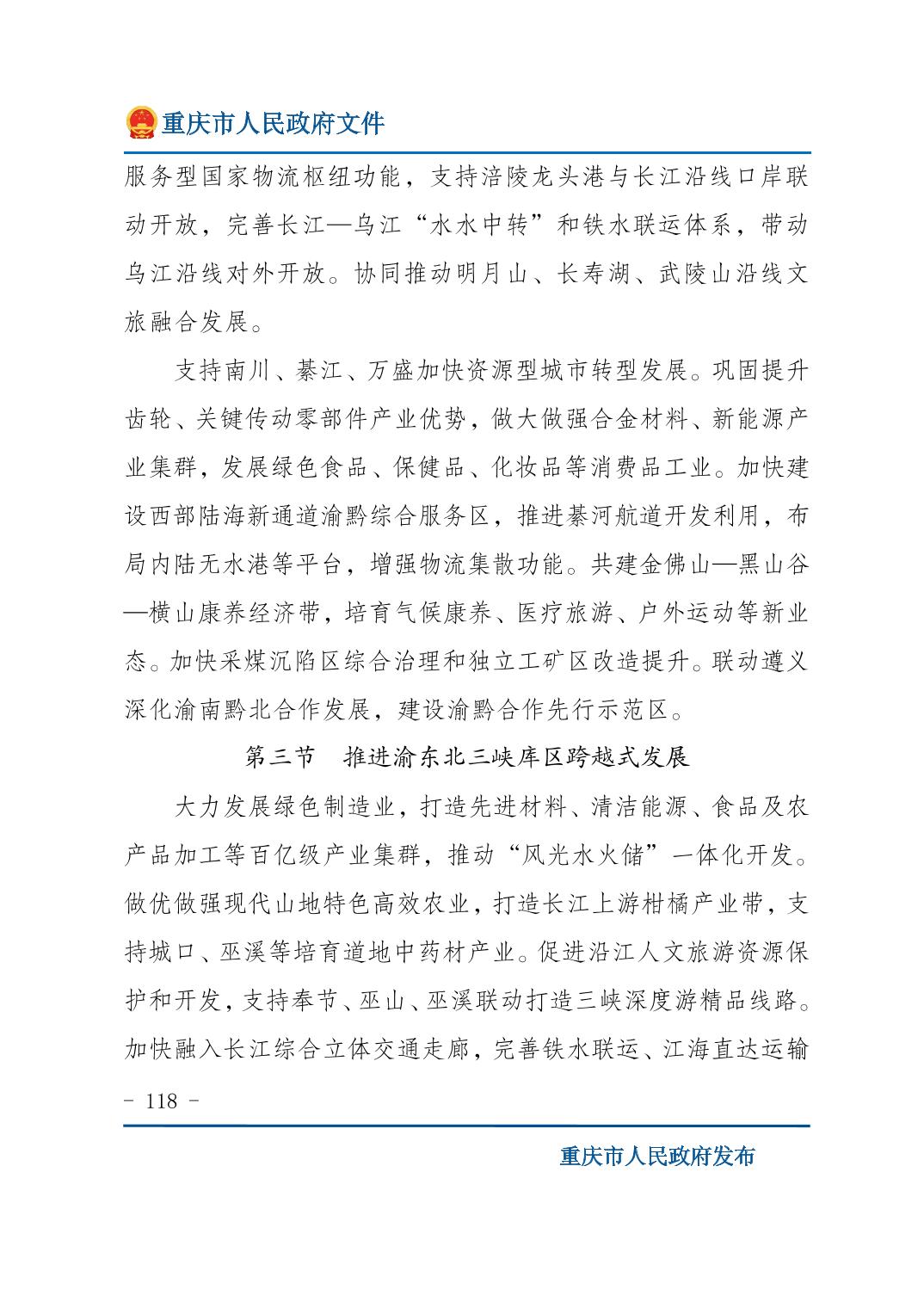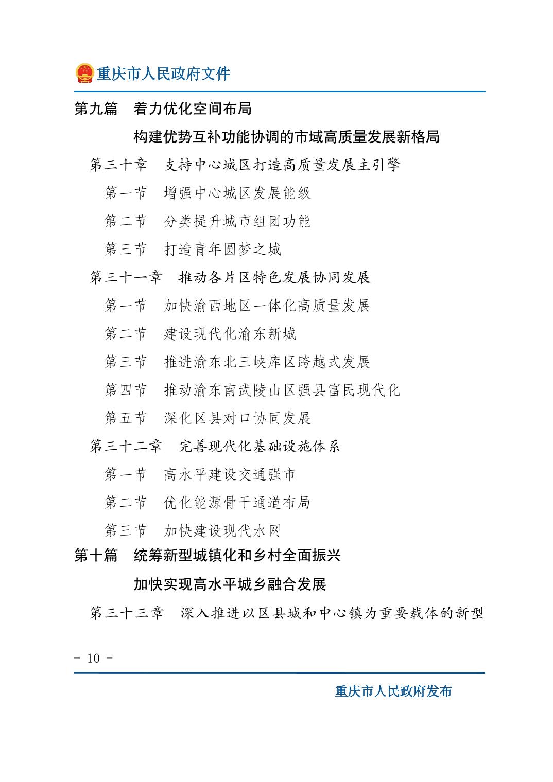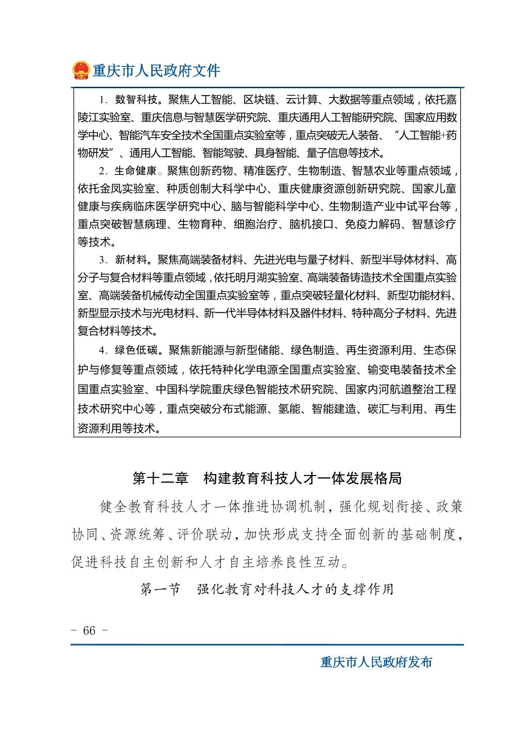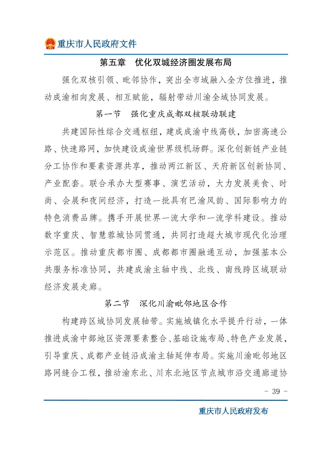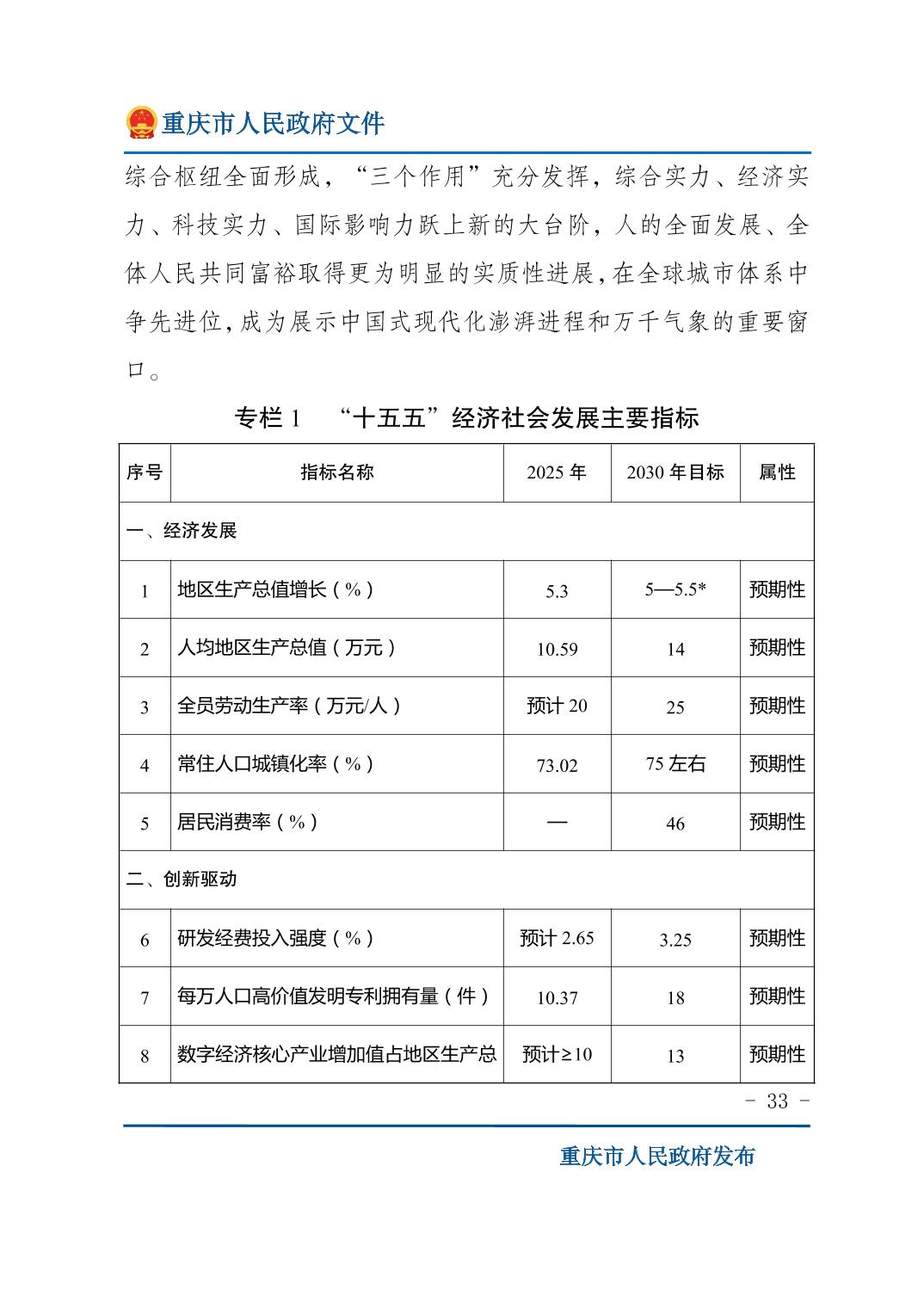 重庆市人民政府关于印发《重庆市国民经济和社会发展第十五个五年规划纲要》的通知
