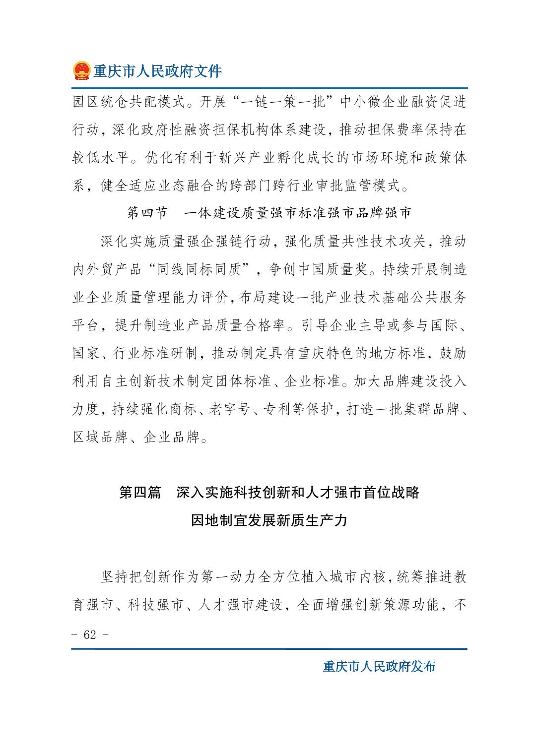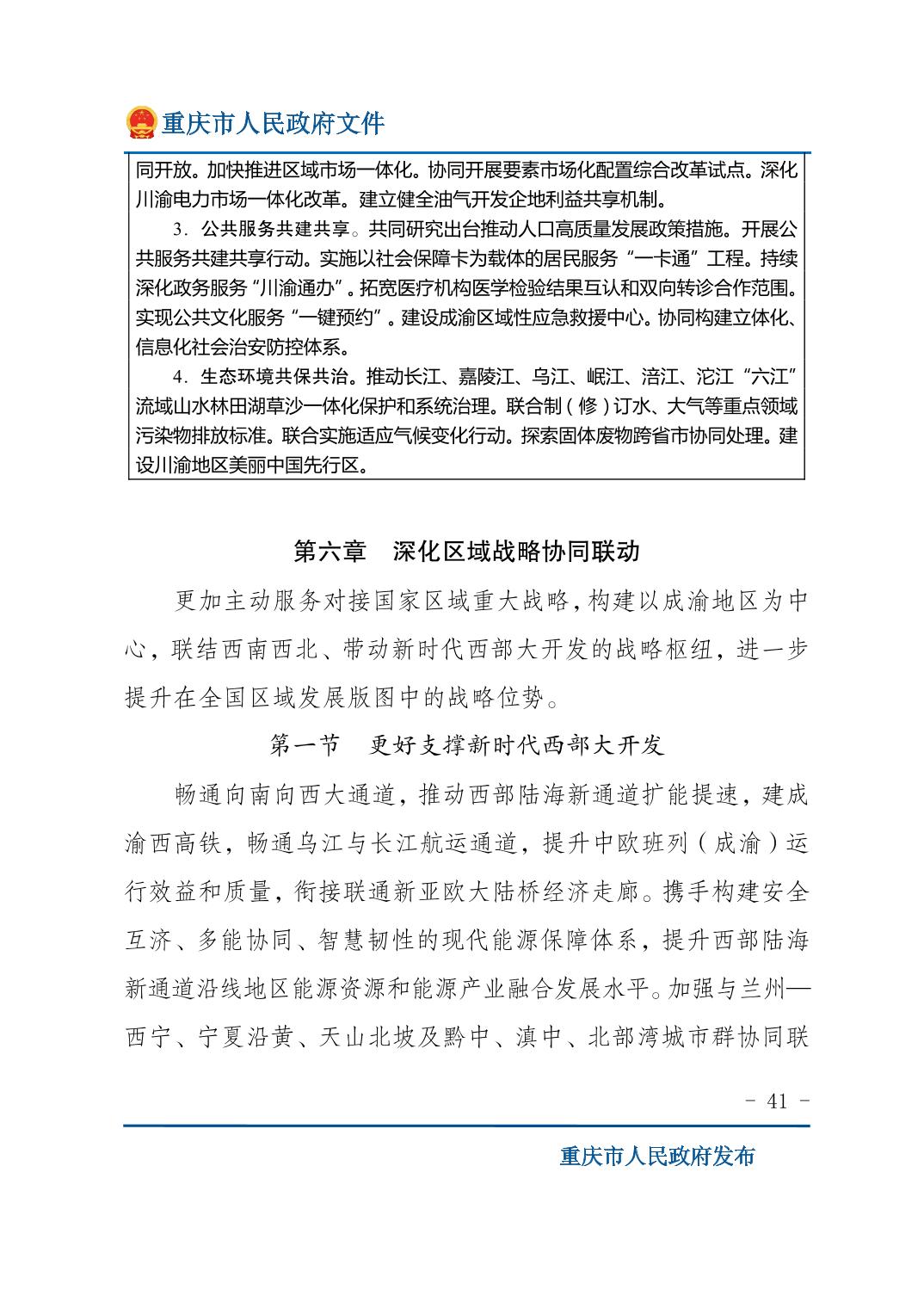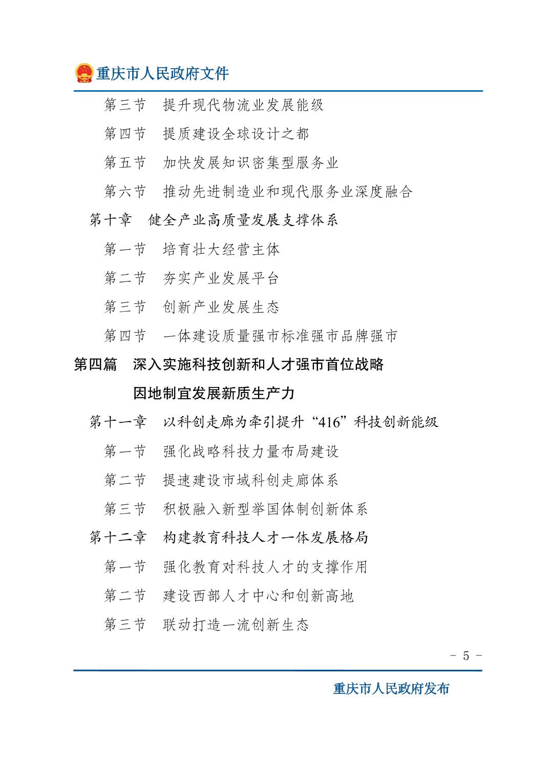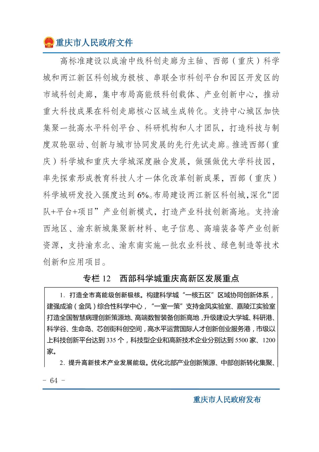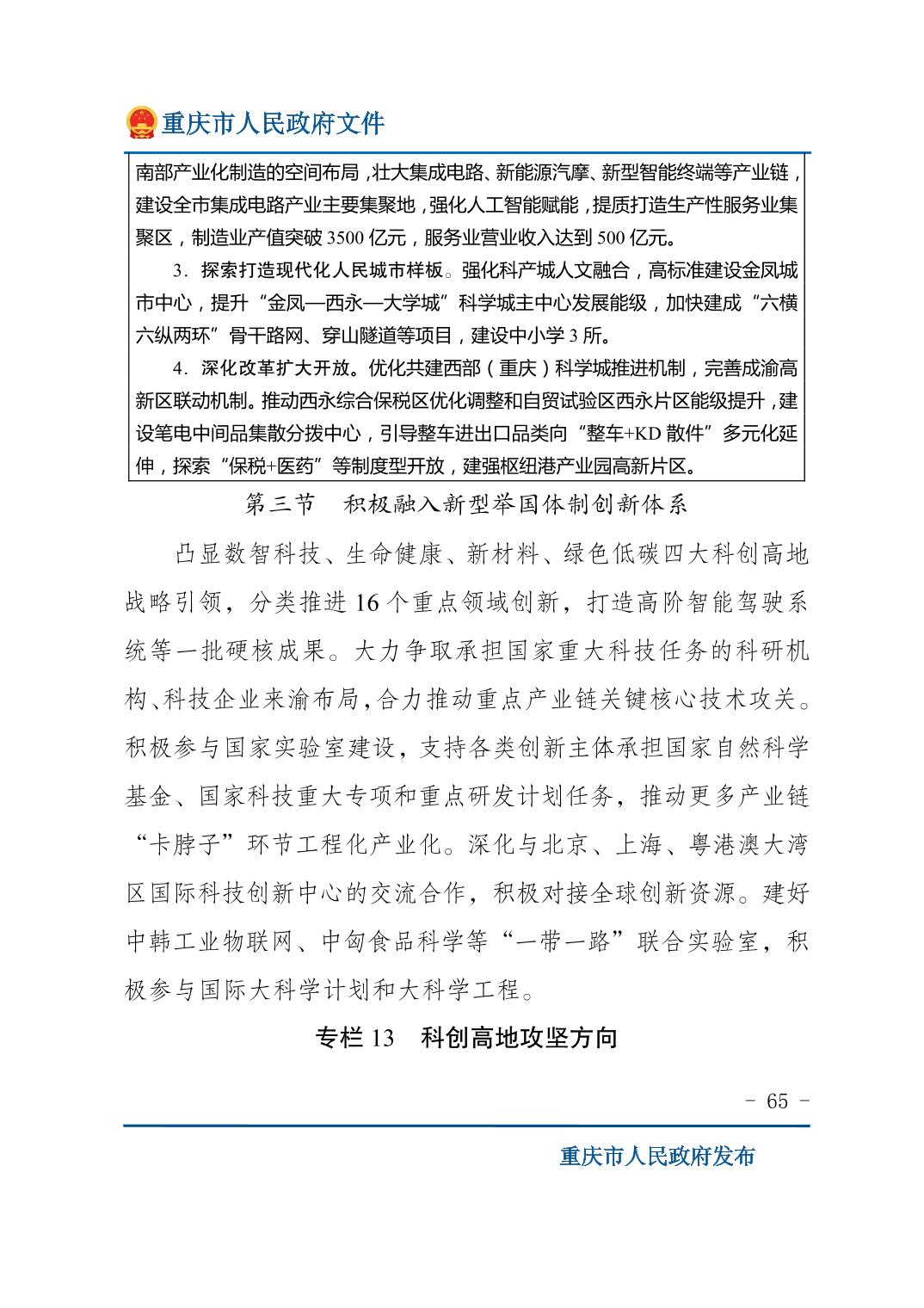 重庆市人民政府关于印发《重庆市国民经济和社会发展第十五个五年规划纲要》的通知