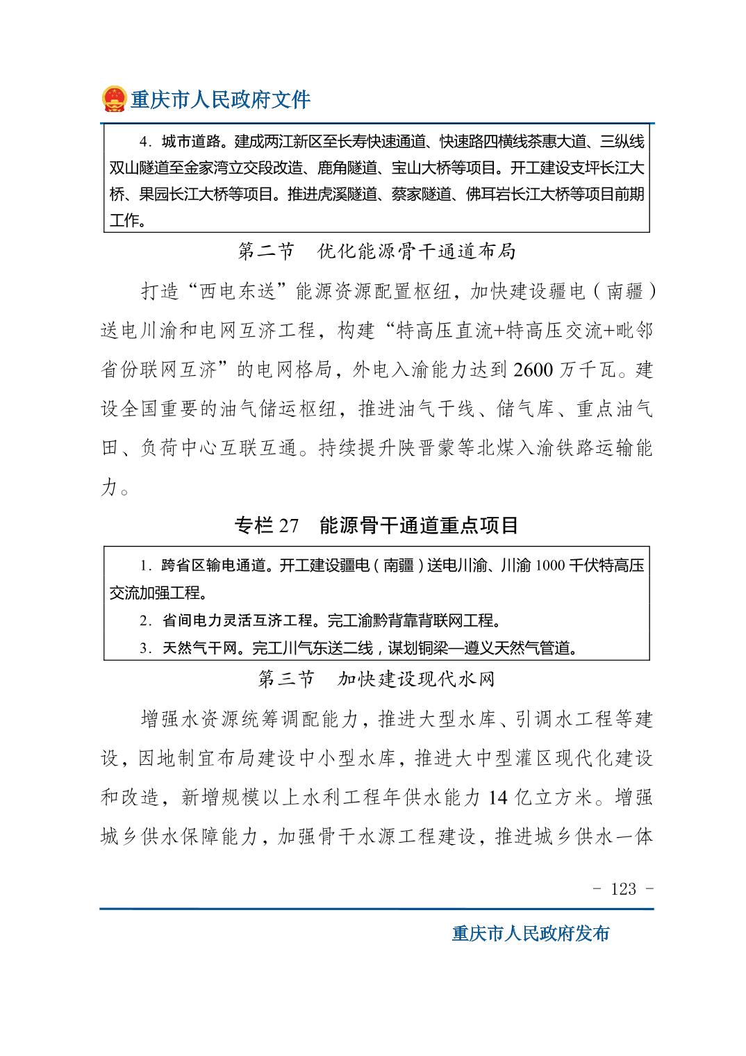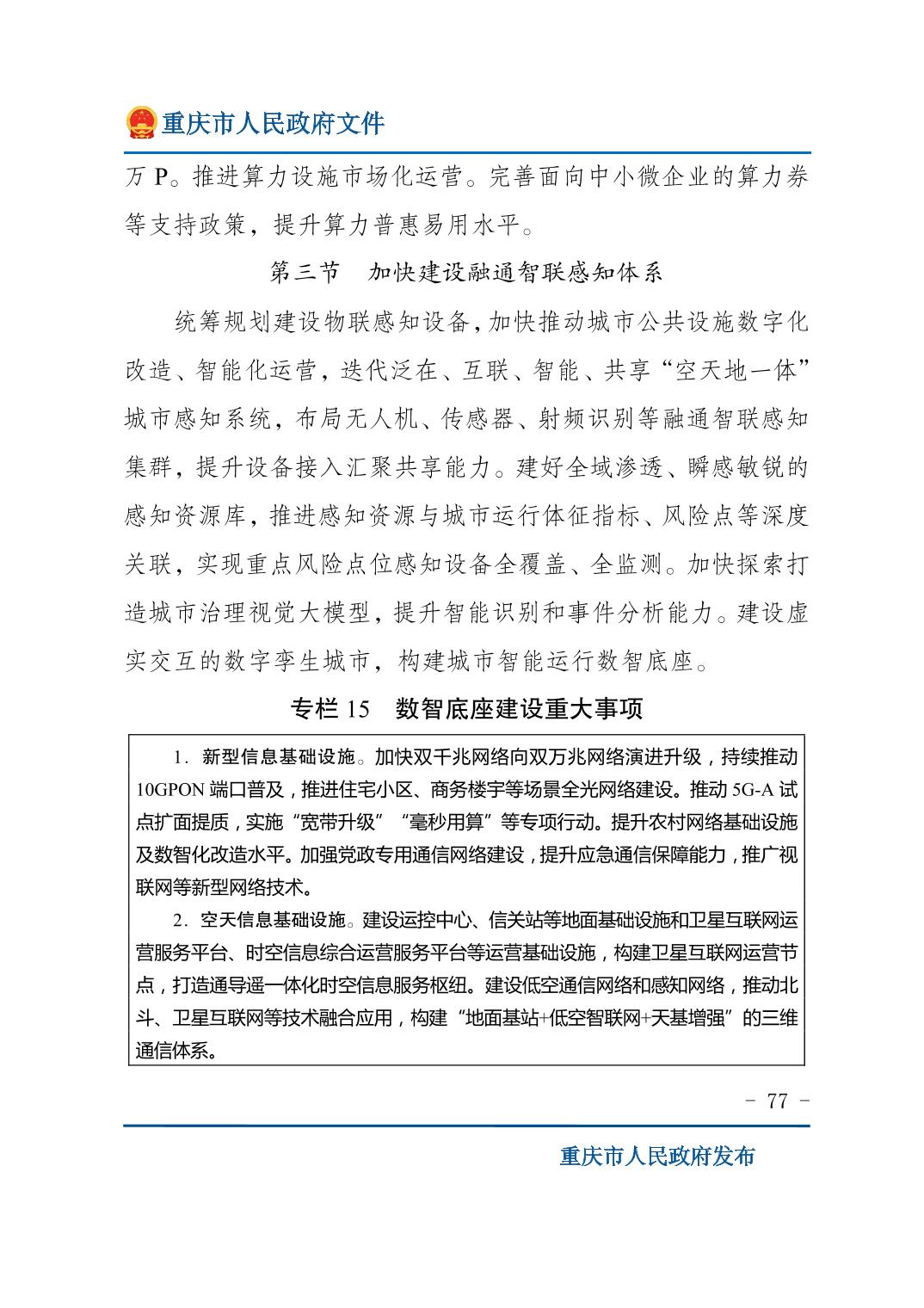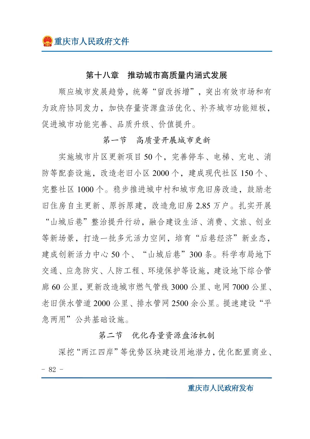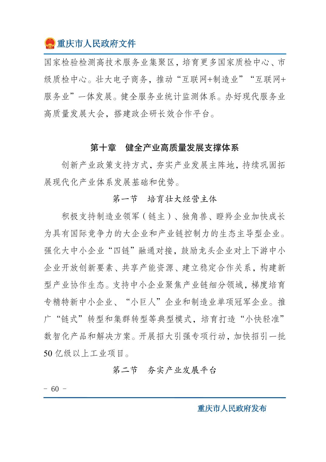 重庆市人民政府关于印发《重庆市国民经济和社会发展第十五个五年规划纲要》的通知