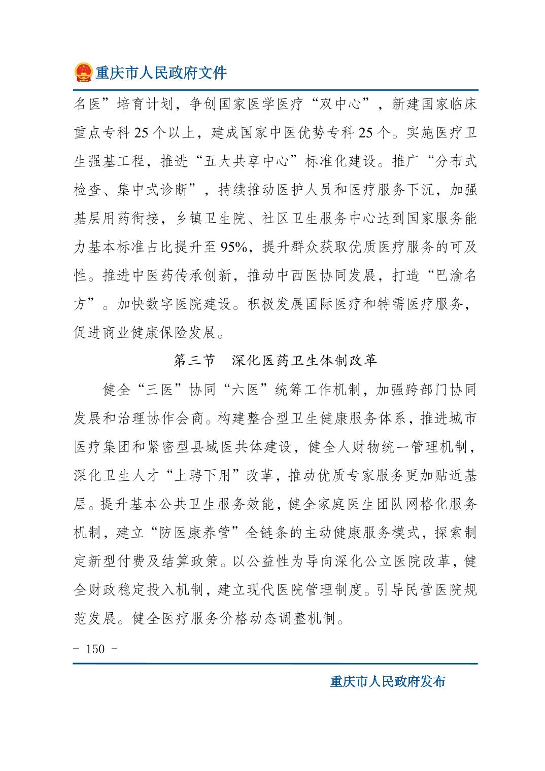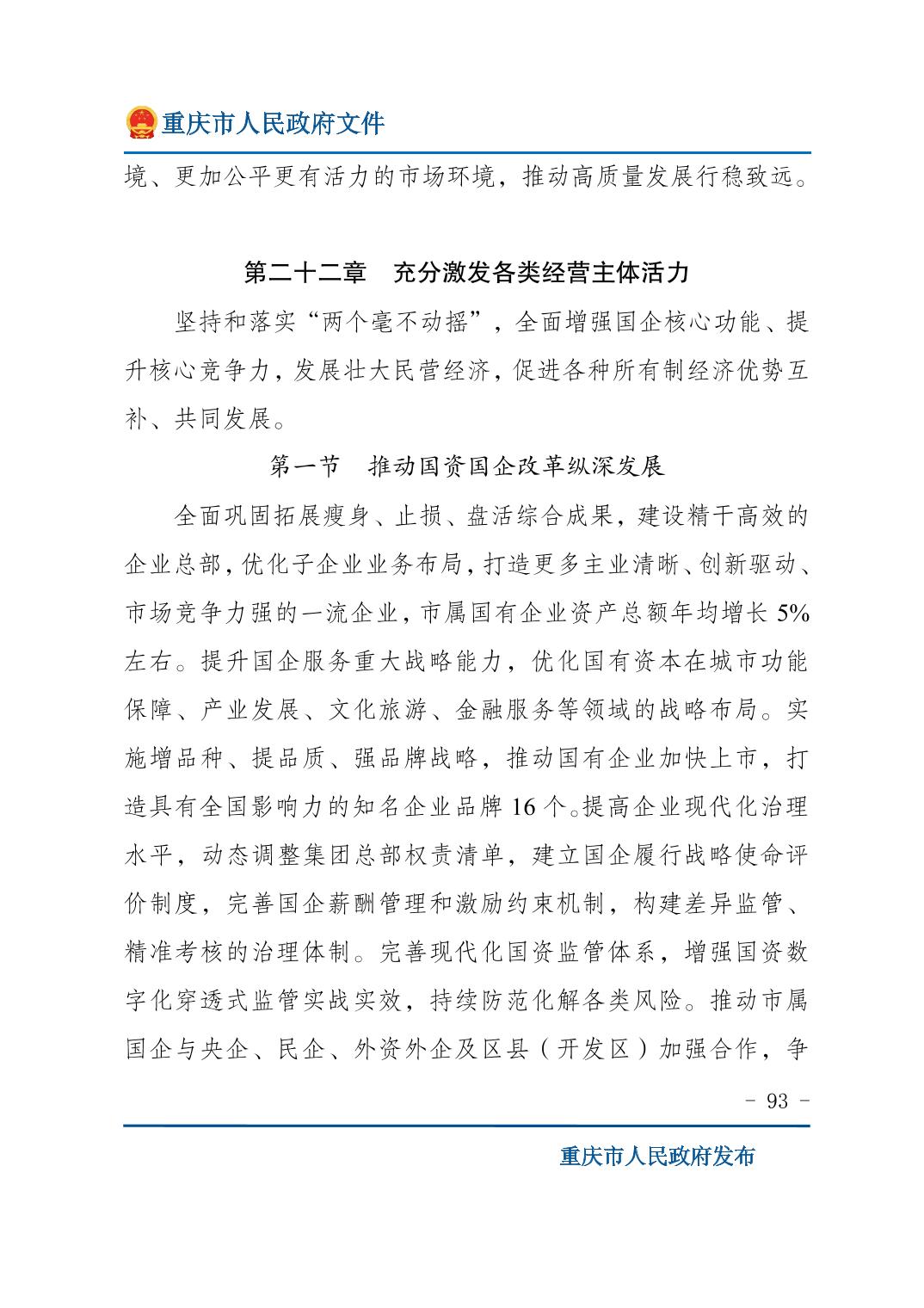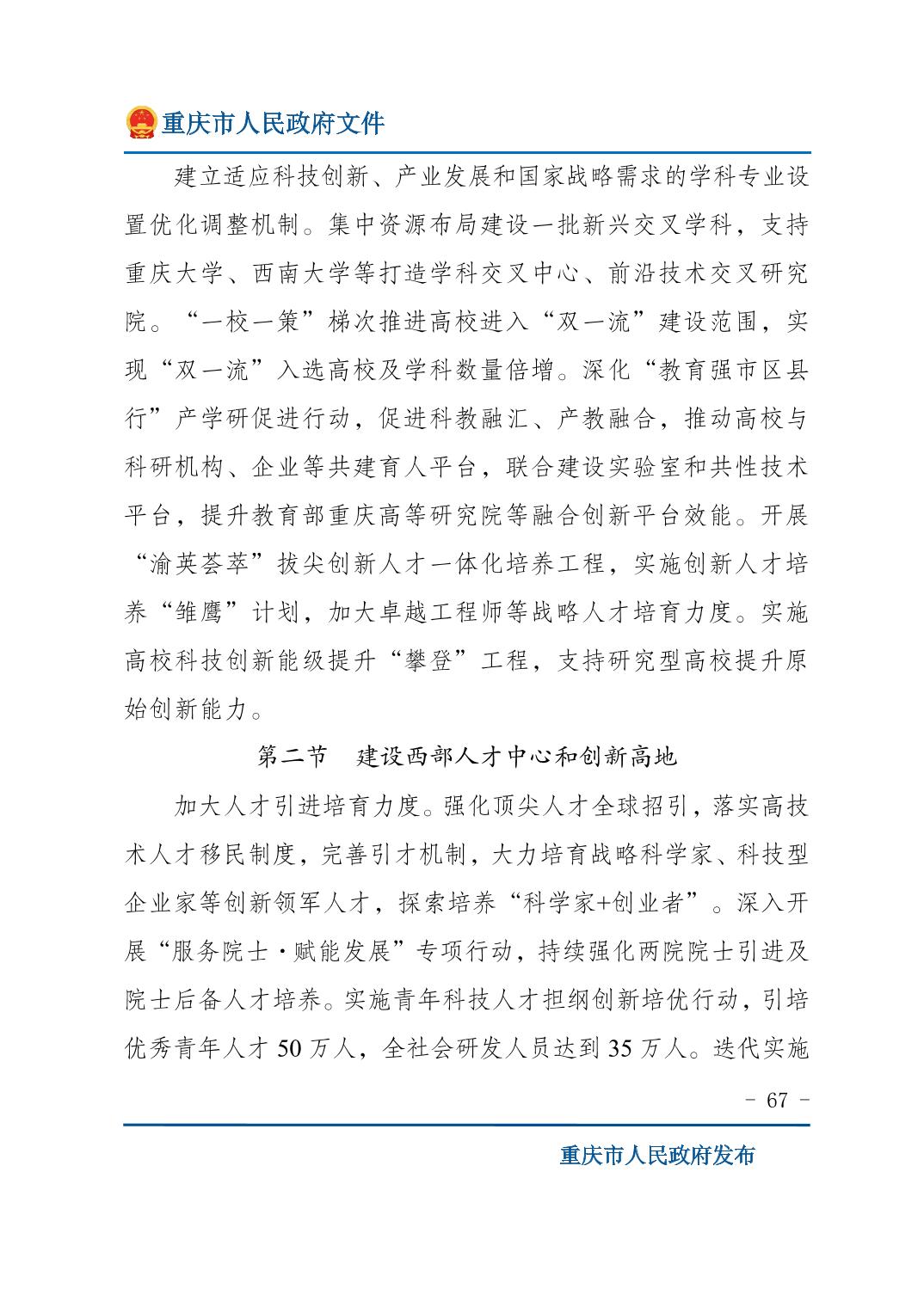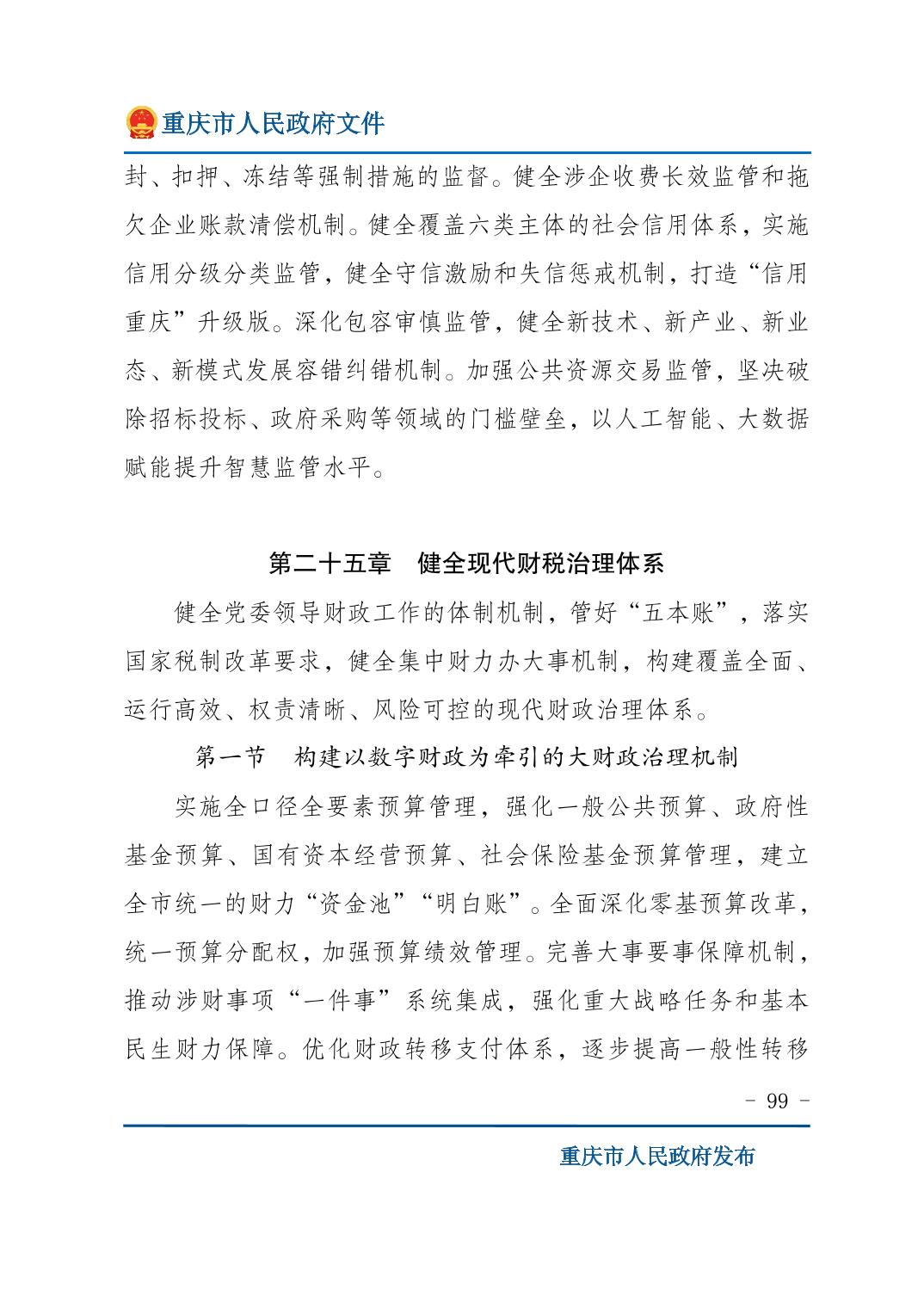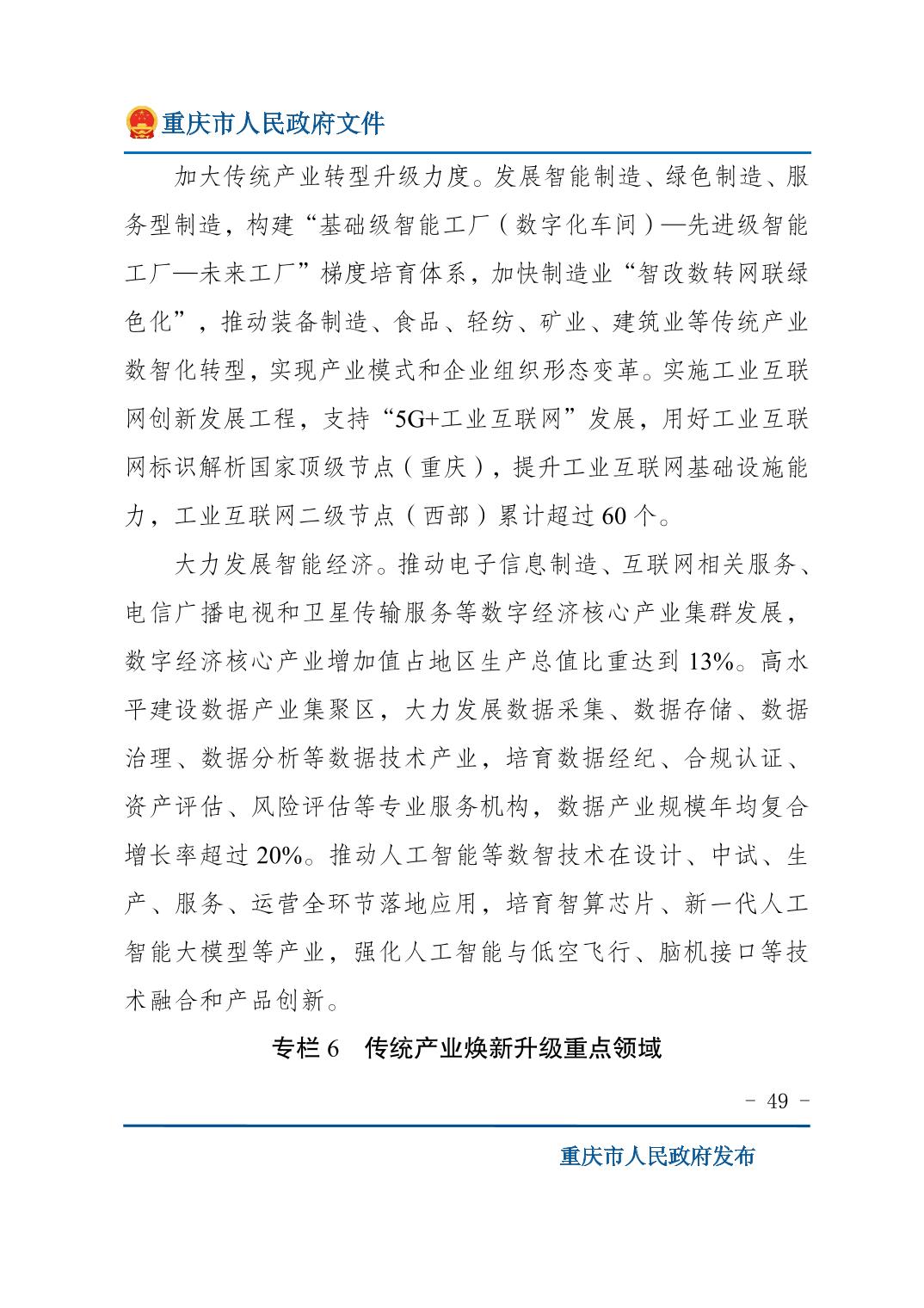 重庆市人民政府关于印发《重庆市国民经济和社会发展第十五个五年规划纲要》的通知