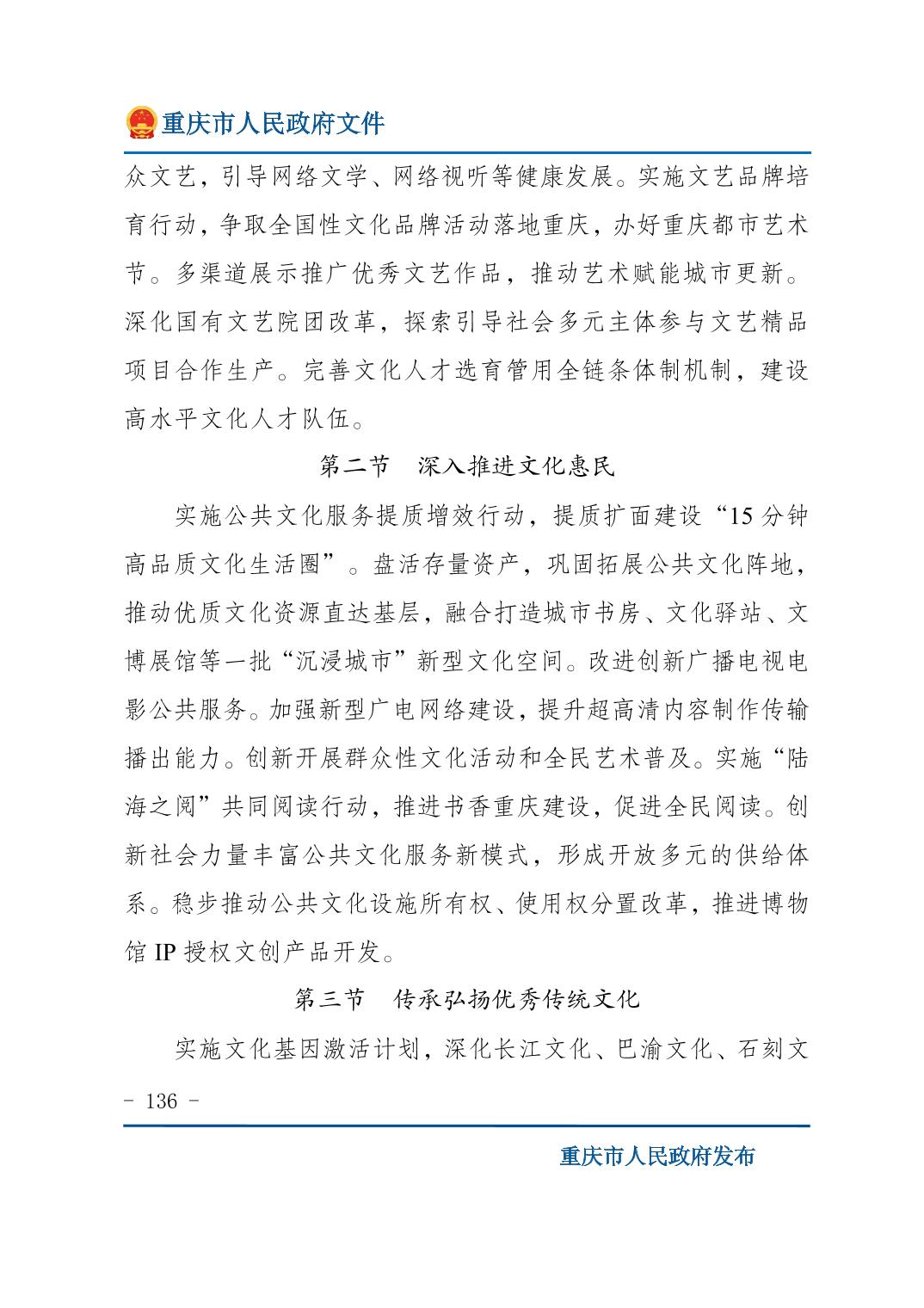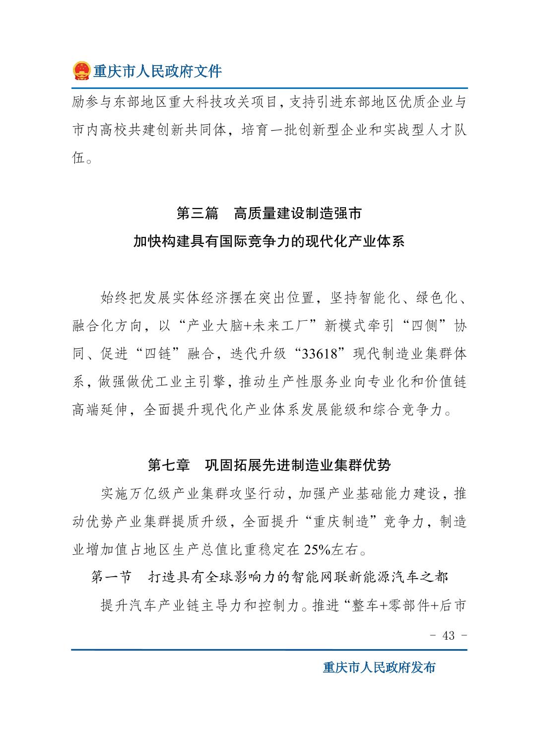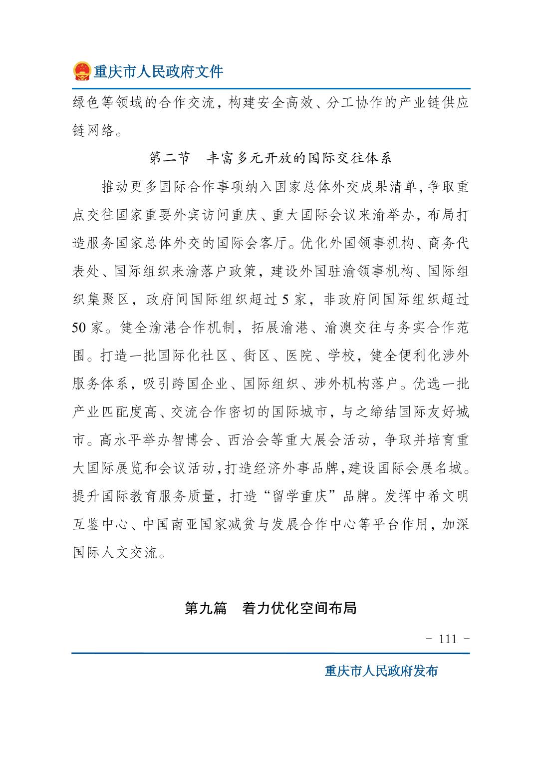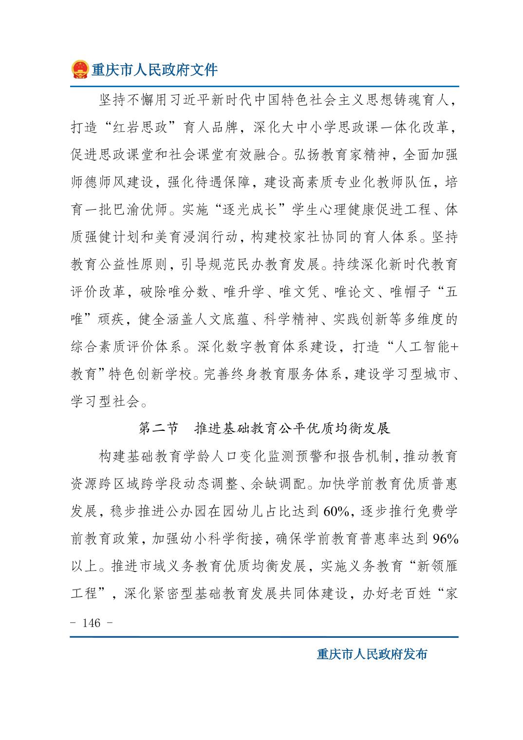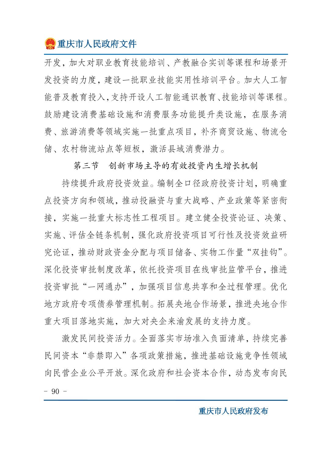 重庆市人民政府关于印发《重庆市国民经济和社会发展第十五个五年规划纲要》的通知