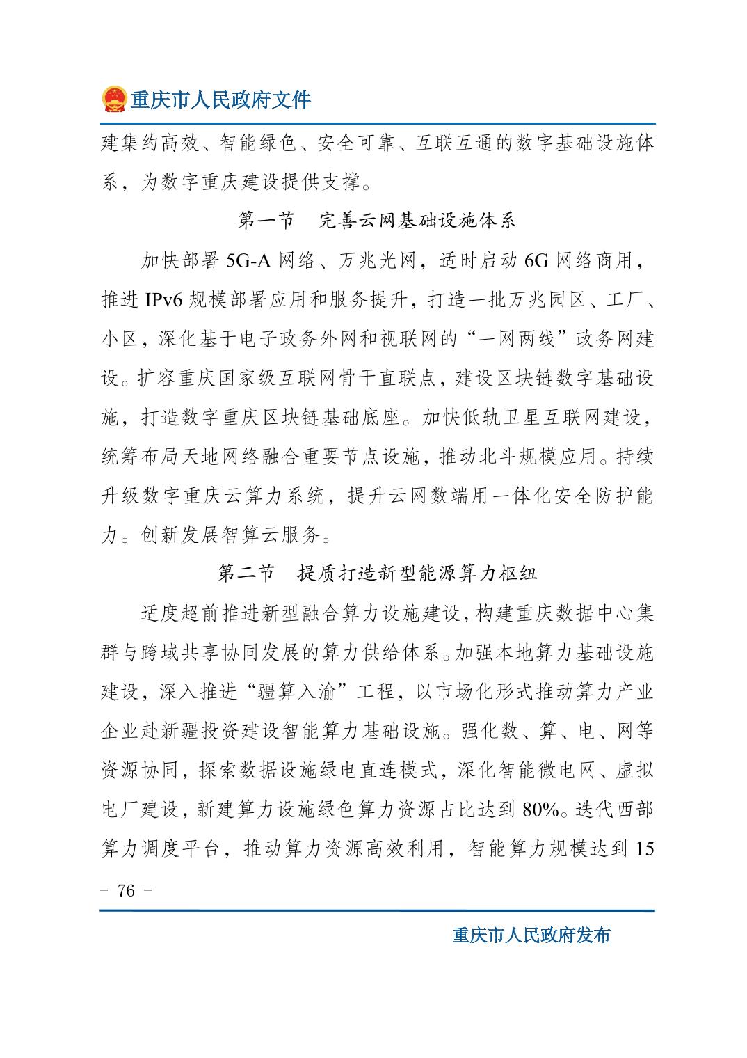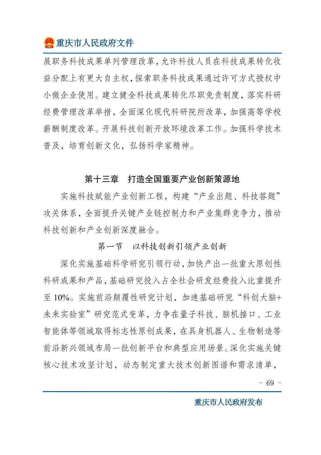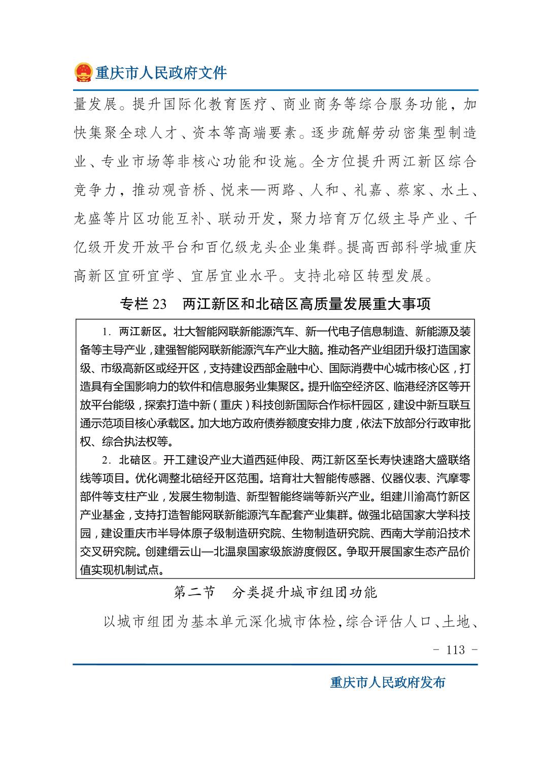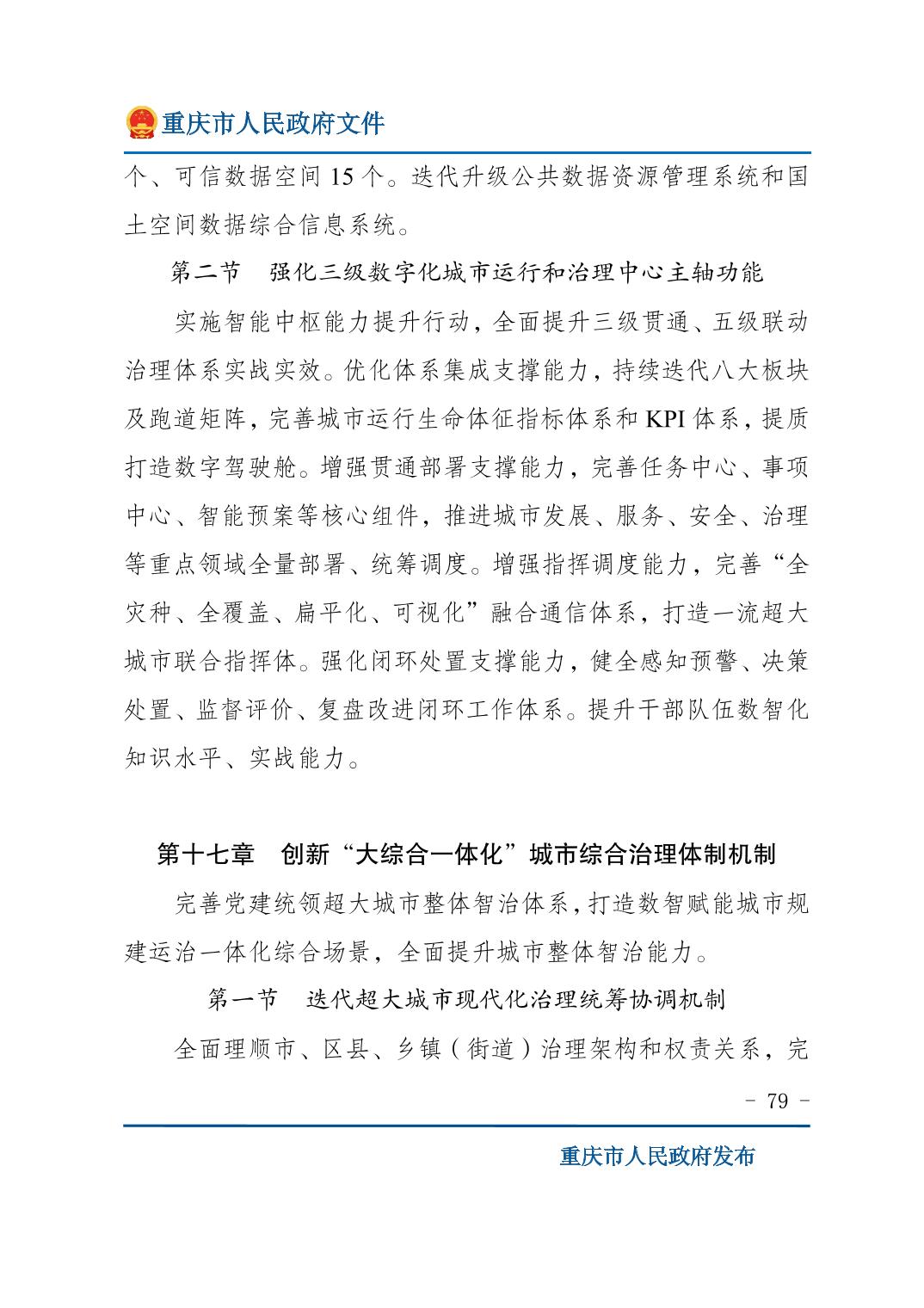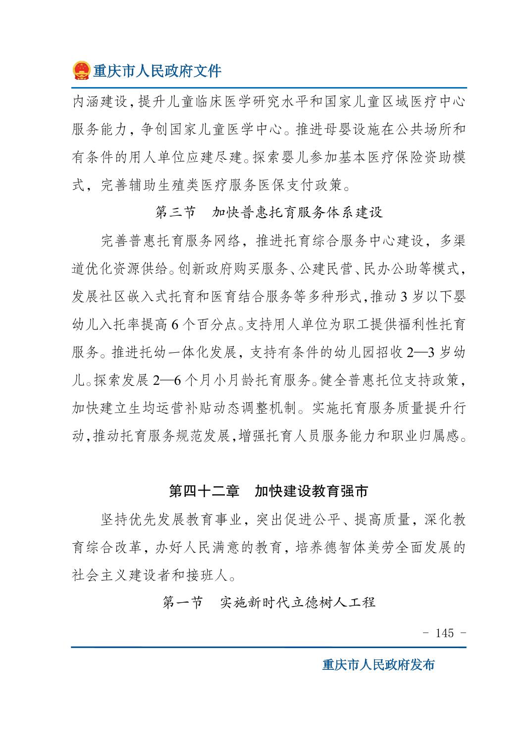重庆市人民政府关于印发《重庆市国民经济和社会发展第十五个五年规划纲要》的通知