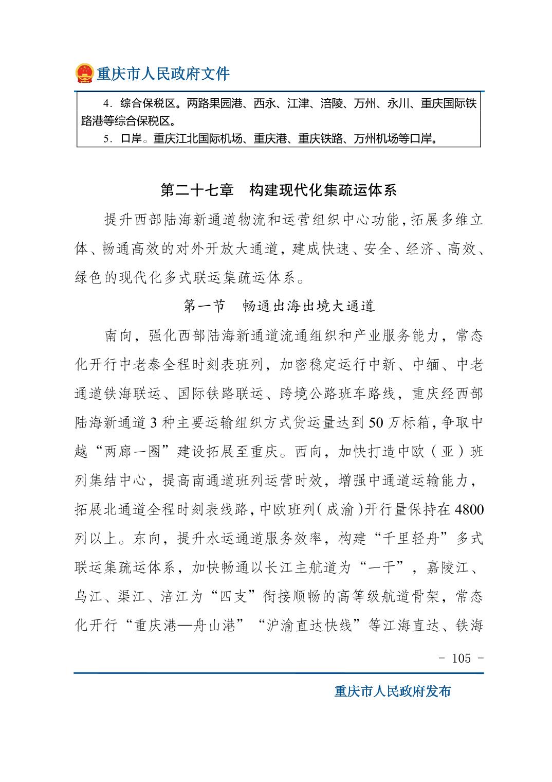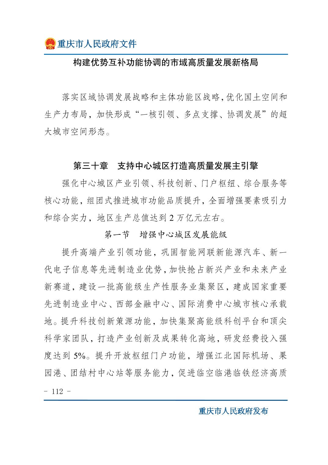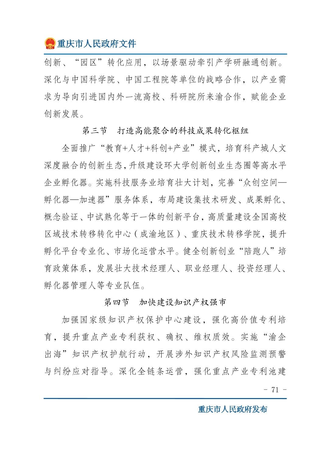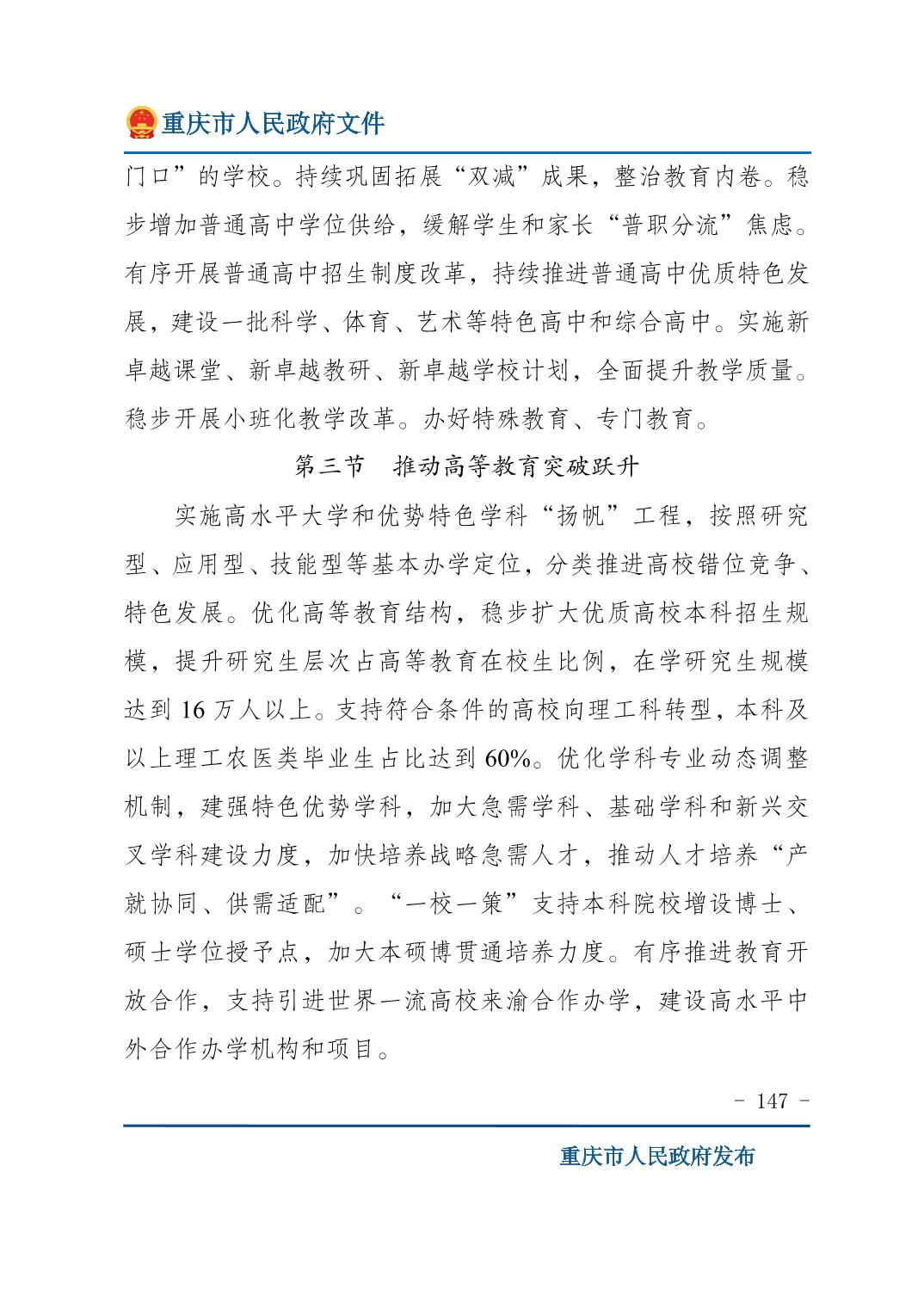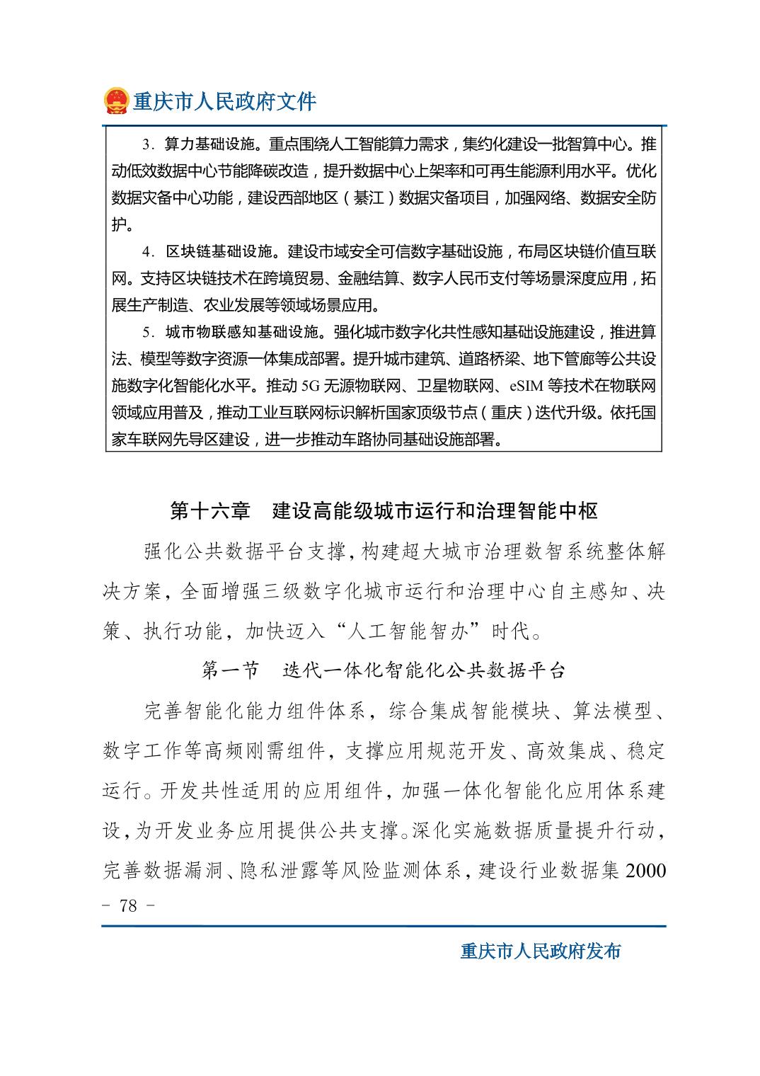 重庆市人民政府关于印发《重庆市国民经济和社会发展第十五个五年规划纲要》的通知