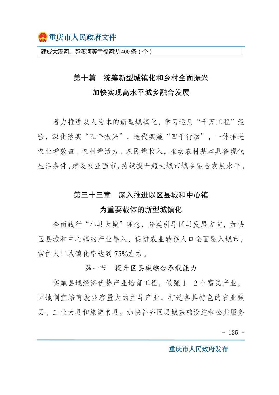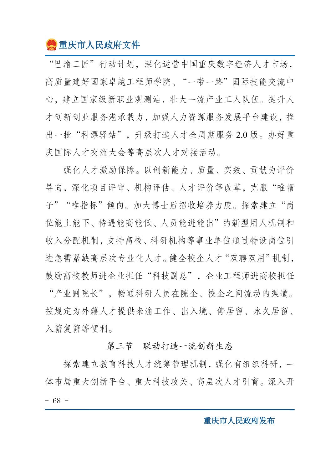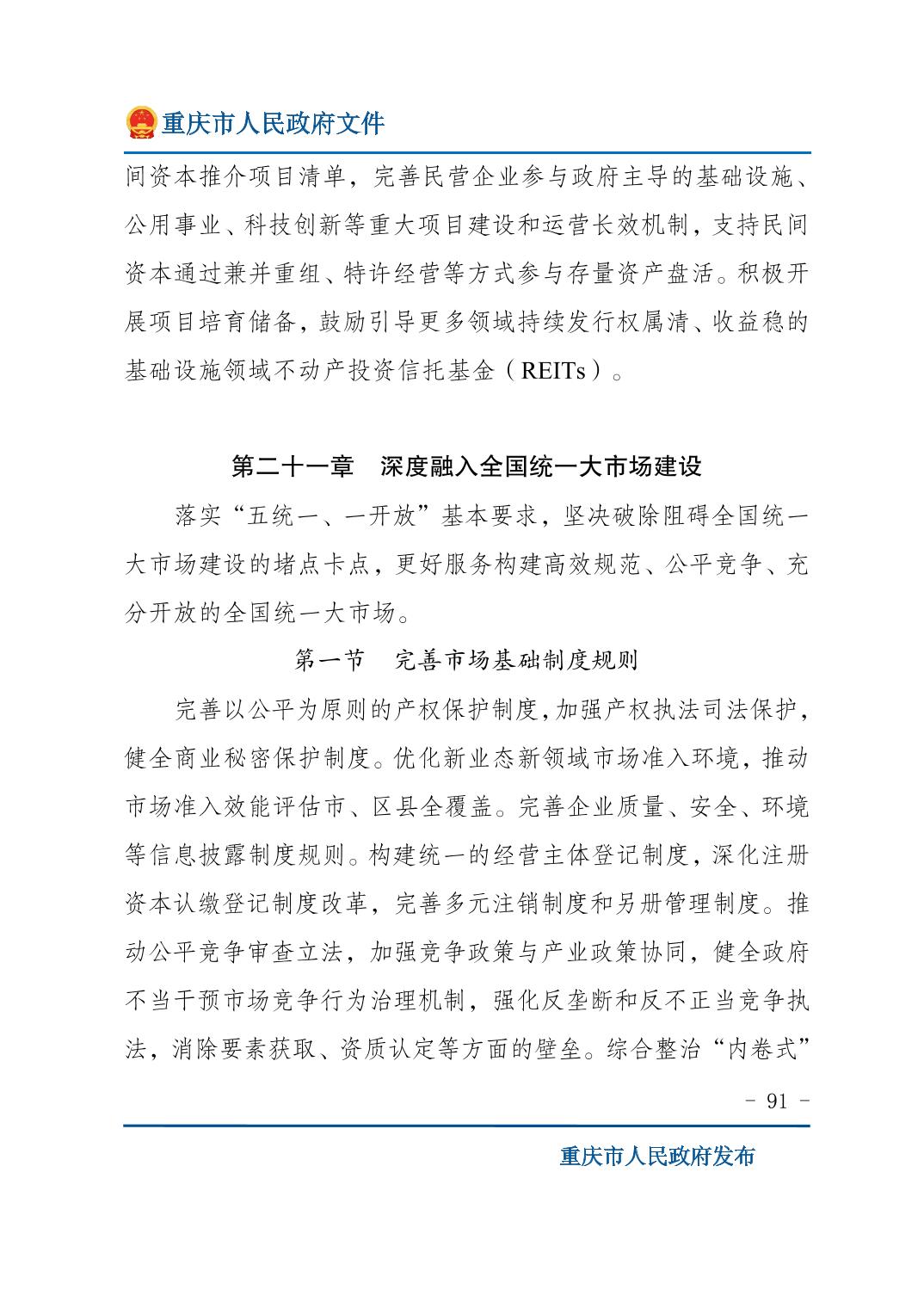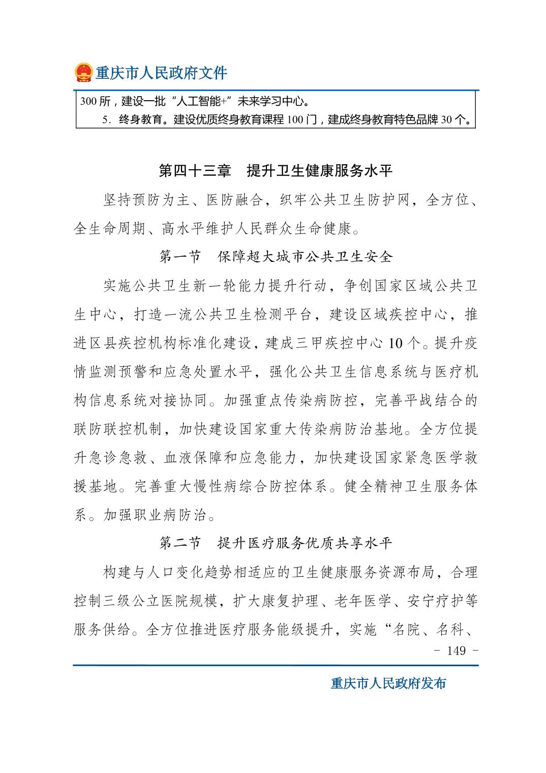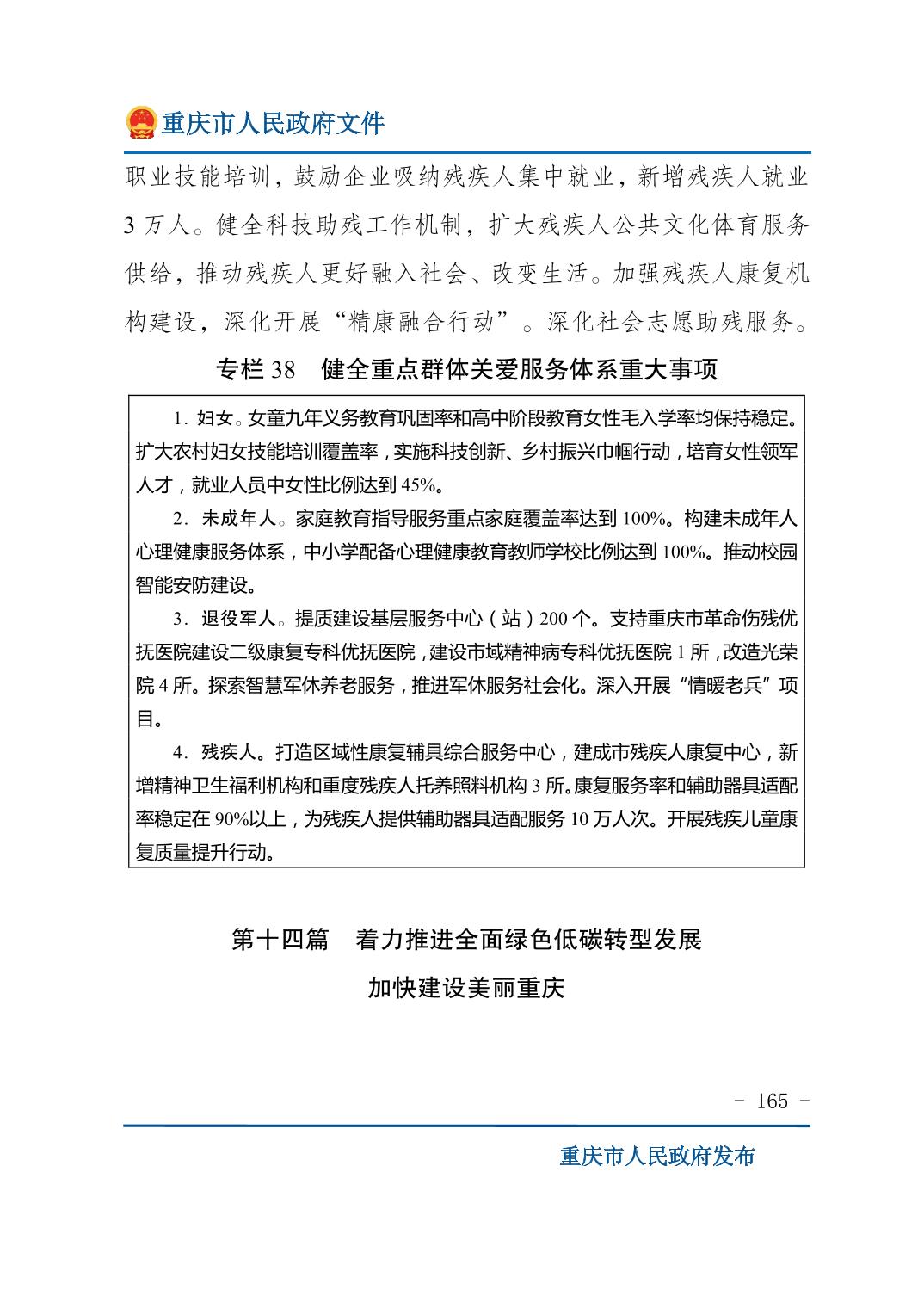 重庆市人民政府关于印发《重庆市国民经济和社会发展第十五个五年规划纲要》的通知
