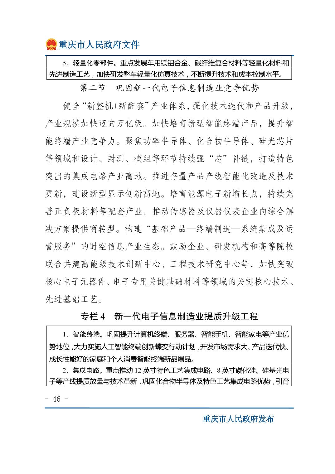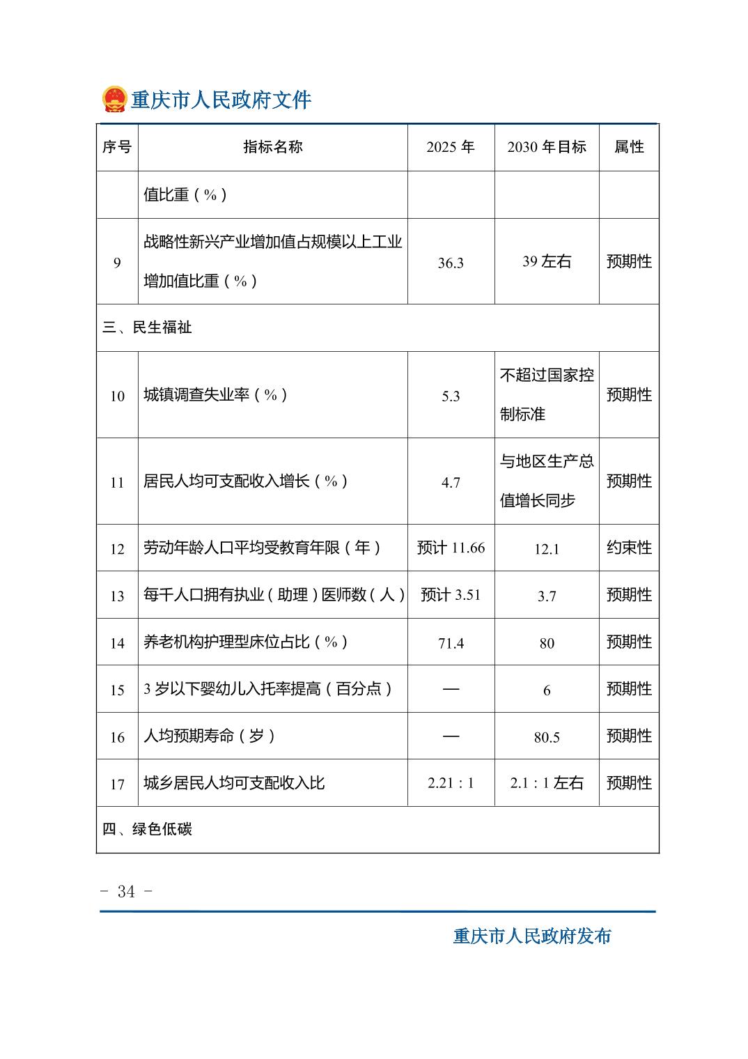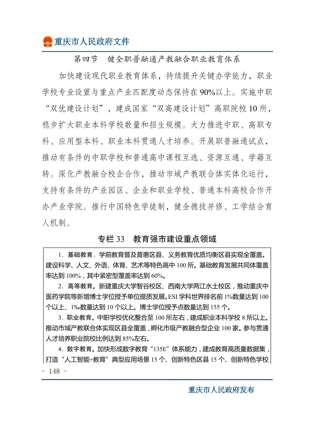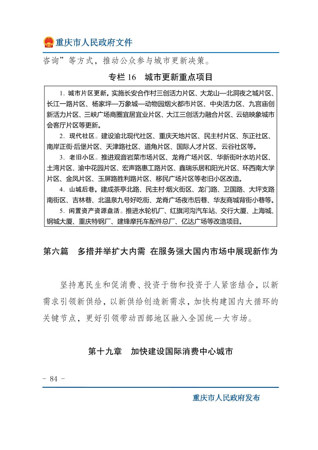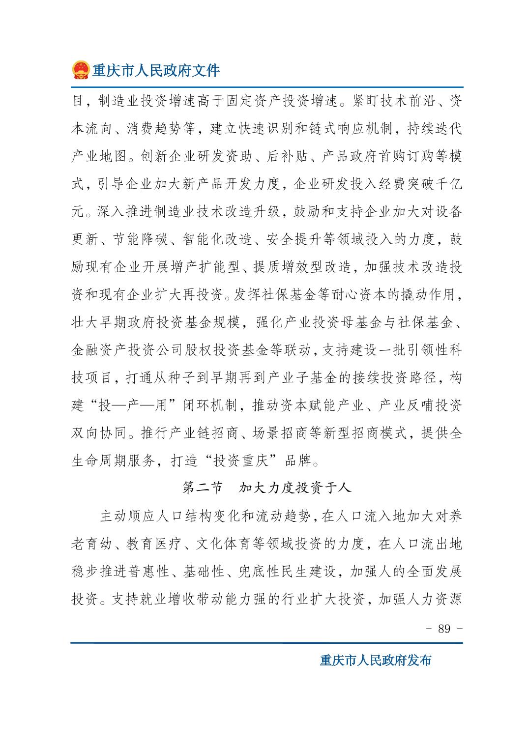 重庆市人民政府关于印发《重庆市国民经济和社会发展第十五个五年规划纲要》的通知