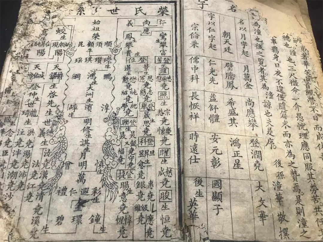 清道光二十五年《荣氏家谱》名字排行及世系图